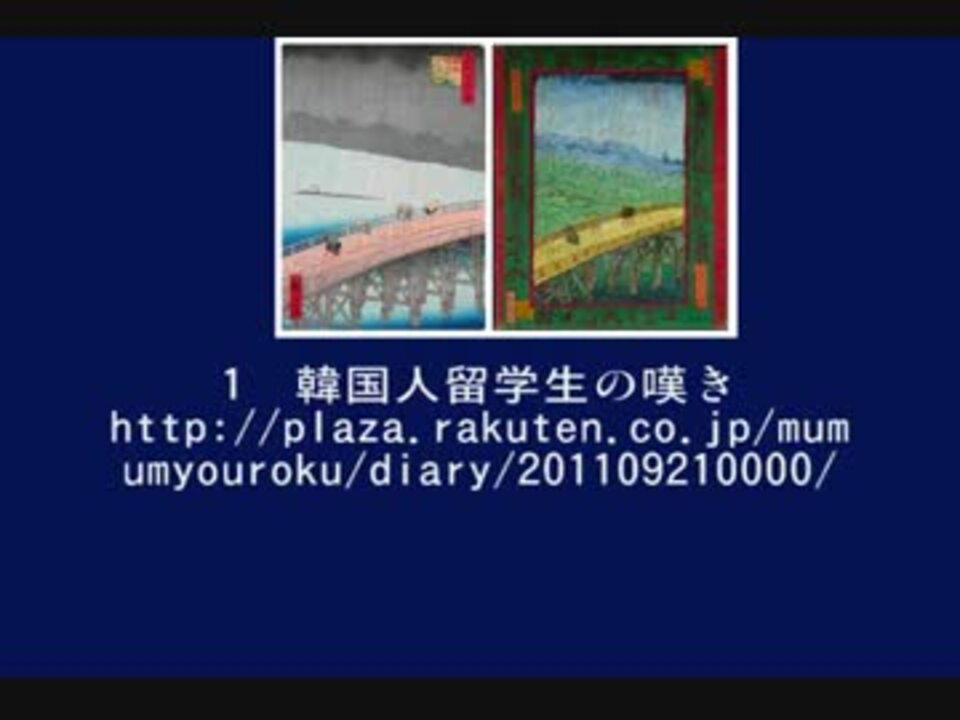 Youtubeから 元動画のURL: <a href="http://www.youtube.com/watch?v=jPWBU-__gIU" target="_blank" rel="noopener nofollow">http://www.youtube.com/watch?v=jPWBU-__gIU</a> qqqqcccqqqq5678 さんが 2012/05/05 に公開 『(ブログねずきちのひとりごとより引用)ご紹介する記事は2つです。ひとつは「韓国人留学生の嘆き」もうひとつは「韓国の青年が見た現実」です。<a href="http://nezu621.blog7.fc2.com/blog-entry-1486.html(中略)けれど言いたいのです" target="_blank" rel="noopener nofollow">http://nezu621.blog7.fc2.com/blog-entry-1486.html(中略)けれど言いたいのです</a>。日本人がコリアンと異なり、世界から賞賛されるのは、カネがあるからではないということです。創意工夫を凝らすこと、人々に感動をもたらすことには、人に知れない膨大な努力と葛藤が背景にあります。そしてそうした膨大な努力と葛藤を支える精神的基盤が、日本には厳然と存在する、ということをです。(後略)』