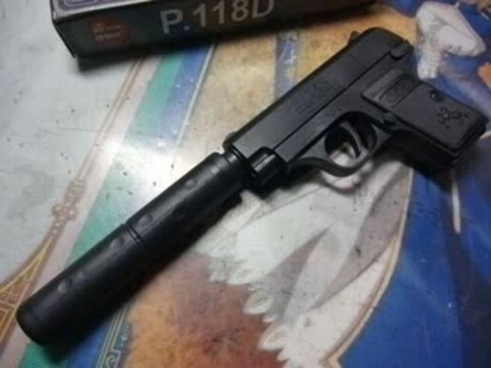 300円の割にいい銃です 屋外での射撃→<a href="https://www.nicovideo.jp/watch/sm17777186" class="watch">sm17777186</a> その他投稿動画→<a href="https://www.nicovideo.jp/mylist/20468186" target="_blank" rel="noopener">mylist/20468186</a> 追記 意外に知られてないですが、一番初めに登場したマキシムサイレンサー以降サイレンサー(Silencer)が90年代まで普通で、サプレッサー(Suppressor)は90年代以降に出てきた呼び方です 机に関するコメントも目立つので言いますが、この机は自分が小学校に入る前から使ってるもので、17年使っていてそれなりに気に入ってます。現在は作業台代わりです
