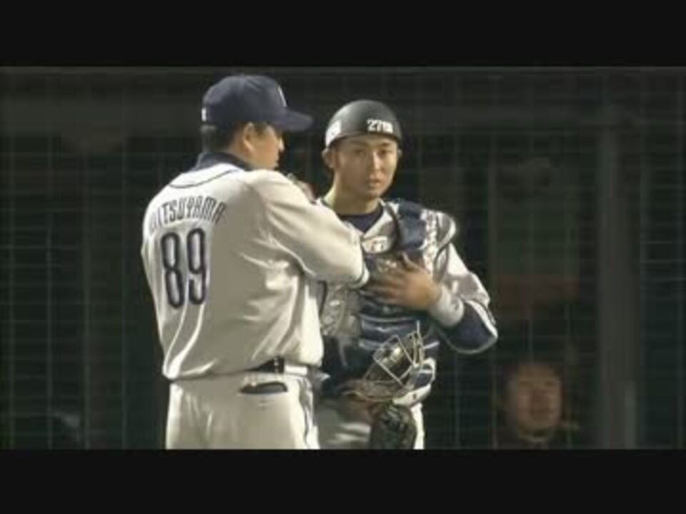 ホームのクロスプレーの判定に対する抗議で星捕手退場。(この動画ではわかりにくいので申し訳ないのですが、勢い余って審判を押してしまったようです。) 炭谷・上本・米野は既に退いています。そして出てきたのは