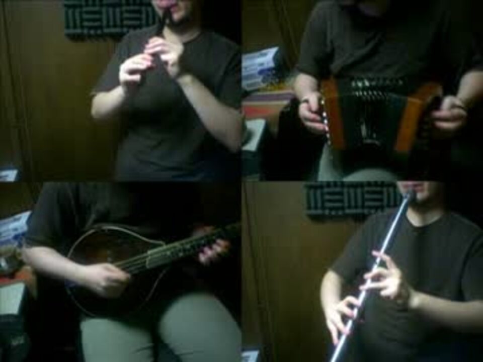 リジッドパラダイスやってみました。編成は、ローホイッスル、ティンホイッスル、コンサーティーナ、マンドリンの4分割画面+打ち込みと、動画ないけどブズーキも弾いてます。テンポ落としてますが、原曲にそって構築はしてる感じです。笛とか持ち替え厳しいので、動画途中でクロスオーバーさせてます。エスニックな感じがする曲ですけど、後半の聴かせるメロディも良い感じですよね。<a href="https://www.nicovideo.jp/user/1889726" target="_blank" rel="noopener">user/1889726</a>
