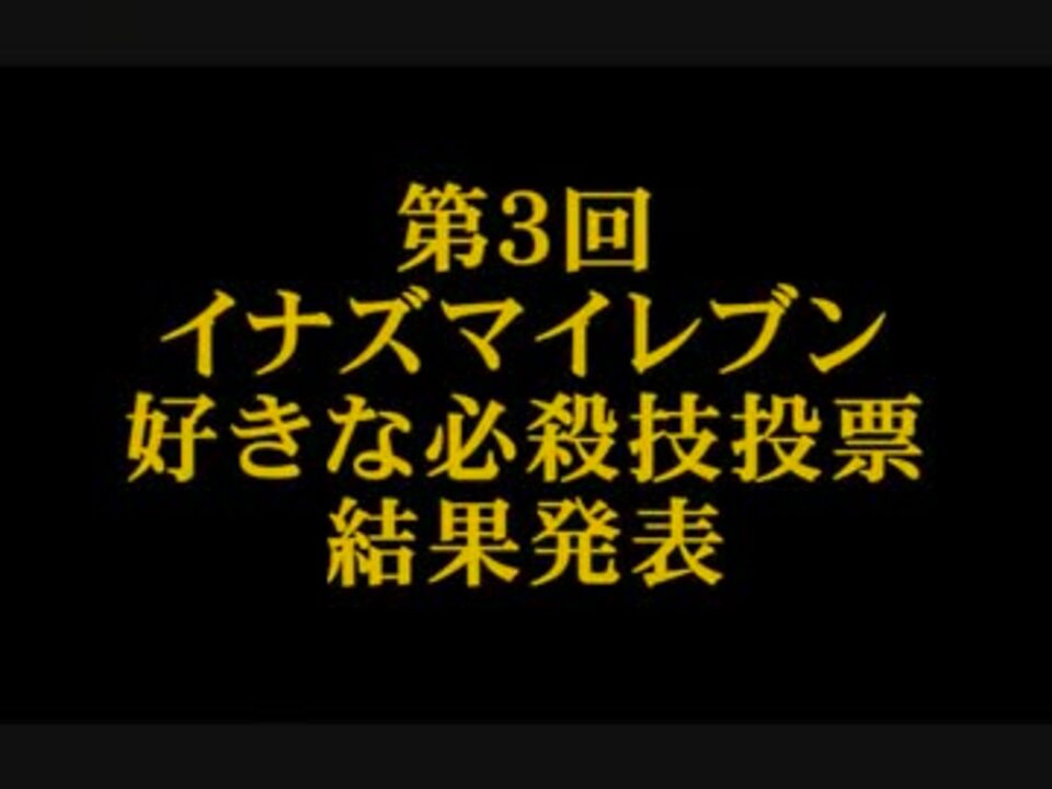 おまたせしました。みなさんにご参加いただいた第3回・イナズマイレブンシリーズ好きな必殺技投票の結果ができましたのでうpします。<br />動画再生時間見ればわかると思いますが、今回すごく長くなっちゃいました。すみません。<br />動画内で結果のネタバレ、キャラなどの誹謗中傷、荒らし行為は禁止です。<br /><br /><font color="red">常識のある人へ。荒らしは徹底スルーでお願いします。</font><br /><br />過去うp動画→<a href="https://www.nicovideo.jp/mylist/16967649" target="_blank" rel="noopener">mylist/16967649</a>