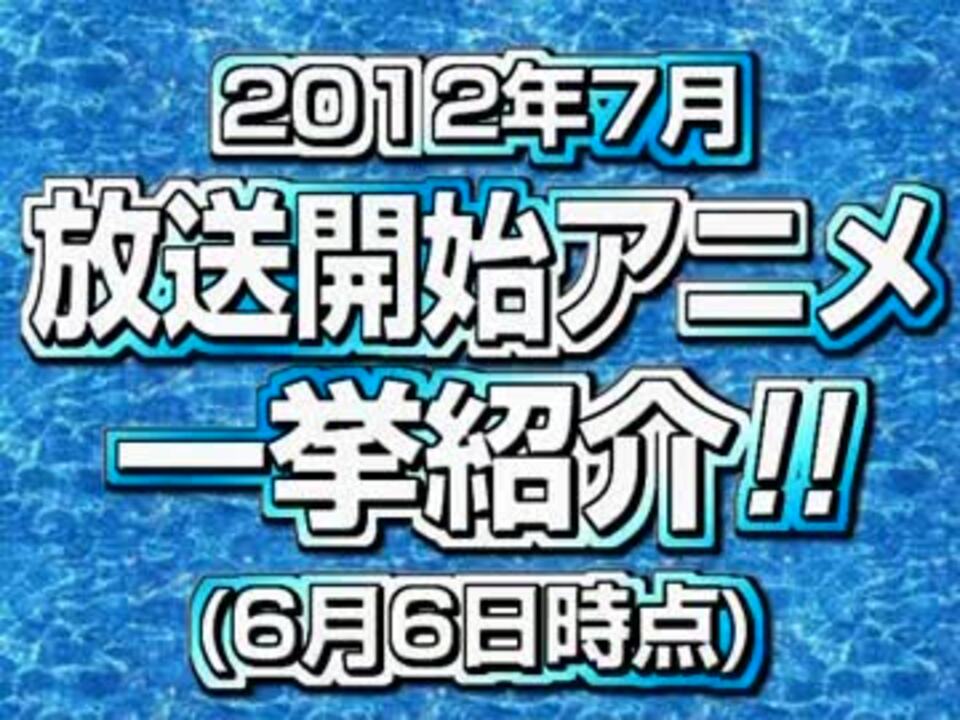 CNTV(カウントナウティービー)#5.1 CNTV増刊号 <br />2012年7月に放送開始される新作アニメ紹介です。土曜深夜のあのノリで。<br /><font color="red">【追記】しっかり確認せずアップロードしてしまったせいで、誤字が多くなってしまいました。申し訳ないです</font><br /><br /><b>(6/15)上半期アニソン売上TOP100公開しました→/<a href="https://www.nicovideo.jp/watch/sm18104028" class="watch">sm18104028</a><br /></b><br />【内容】<br /><b>2012年7月放送開始アニメ一挙紹介!!<br />特集1 「2012年春アニメ主題歌シングル売上TOP10」</b><br />※6月6日時点の情報です。<br />アニソンCD・アニメBD 月間売上ランキング (2012年5月度) <a href="https://www.nicovideo.jp/watch/sm17711858" class="watch">sm17711858</a> <a href="https://www.nicovideo.jp/mylist/32231034" target="_blank" rel="noopener">mylist/32231034</a> <br /><br />恋と選挙とチョコレート/この中に1人、妹がいる!/もやしもん/ゆるゆり♪♪/ソードアート・オンライン/DOG DAYS/薄桜鬼/ 他多数…