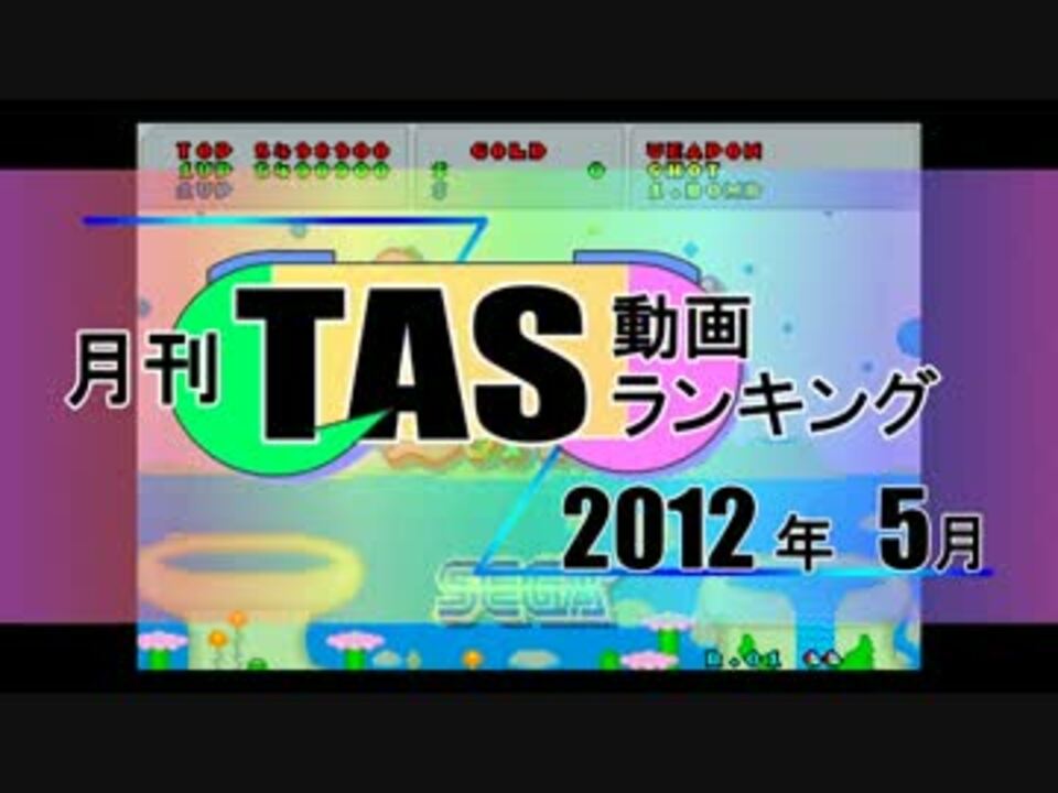 梅雨のジメジメしている時こそ、TAS動画でサッパリ!<br />先月号で「動画IDがコメントにかぶって見にくい」という意見があったので動画IDの表示位置を変えました。<br /><br />集計日時: 2012年6月5日23時59分<br />集計対象: 2012年5月1日~5月31日の間に投稿された動画。<br />集計結果:<a href="https://www.nicovideo.jp/mylist/32387793" target="_blank" rel="noopener">mylist/32387793</a> 総合バックナンバー:<a href="https://www.nicovideo.jp/mylist/37739083" target="_blank" rel="noopener">mylist/37739083</a><br />4月号:<a href="https://www.nicovideo.jp/watch/sm17803252" class="watch">sm17803252</a> | 6月号:<a href="https://www.nicovideo.jp/watch/sm18332959" class="watch">sm18332959</a><br /><br />Q:TASタグ界隈に毎日のように意味不明な動画投稿してる人がいるんだけど。<br />A:キーワード検索で「TAS -検索」とすれば、検索乞食とか検索妨害のタグがついている動画はすべてはじかれます。<br />(詳しくはマイナス検索の大百科を参照)<a href="http://dic.nicovideo.jp/id/3938886" target="_blank" rel="noopener nofollow">http://dic.nicovideo.jp/id/3938886</a><br />そして、荒らし行為は基本的に「無視」してください。
