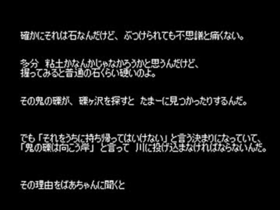 我が家のゆっくりが、洒落怖から読んでくれました。<br />今回のお話は「礫ヶ沢の鬼礫」です。<br /><br />どっこ坂の鬼女(<a href="https://www.nicovideo.jp/watch/sm18085491" class="watch">sm18085491</a>)の登場人物Aが、<br />仏門に入るきっかけとなったお話です。<br /><br />人によっては残酷と感じる表現が含まれる場合があります。<br /><br />自動で次の動画に移動するように設定してあります。<br />(最新の動画のみ、最初の動画に移動します。)<br /><br />ループが嫌な方は、お手数なのですが、終わり際で停止ボタンを<br />押すようにして下さい。<br /><br />バックナンバー>><a href="https://www.nicovideo.jp/mylist/31377965" target="_blank" rel="noopener">mylist/31377965</a><br />有名な話のあらすじ>><a href="https://www.nicovideo.jp/watch/sm17570303" class="watch">sm17570303</a><br />夏の夜長SP>><a href="https://www.nicovideo.jp/watch/sm18041095" class="watch">sm18041095</a>