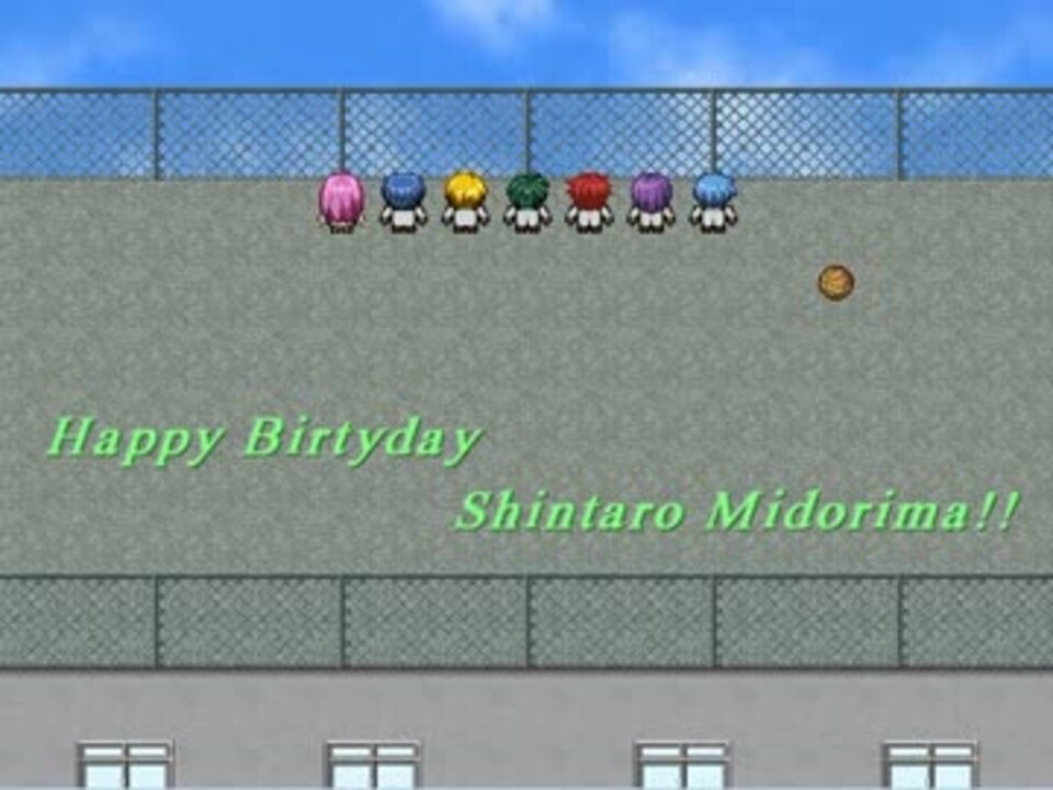 ツクールVXにて制作。<br /><br />緑間さんお誕生日おめでとう!!<br />というわけで、お祝い動画を製作してみました。<br />小説2巻の秀徳話のキセキverのような内容になっています。<br /><br />秀徳編はコチラ⇒<a href="https://www.nicovideo.jp/watch/sm18282508" class="watch">sm18282508</a>(やや女性向け寄りです)<br /><br />(追記)たくさんのご視聴、コメント、マイリスありがとうございます!<br />途中出てくる灰色の彼っぽい生徒は、別に灰色の彼を意識して作ったわけではなく、ただの偶然です。脱出ゲームといい、灰さんには何かと縁がありますね……<br />(追記2)提供が…!宣伝して下さった方、ありがとうございます!!<br /><br />これまでに制作したもの→<a href="https://www.nicovideo.jp/mylist/32466665" target="_blank" rel="noopener">mylist/32466665</a><br />クレジットや進捗状況、動画の余談はこちら→<a href="http://krtk.janken-pon.net/" target="_blank" rel="noopener nofollow">http://krtk.janken-pon.net/</a>