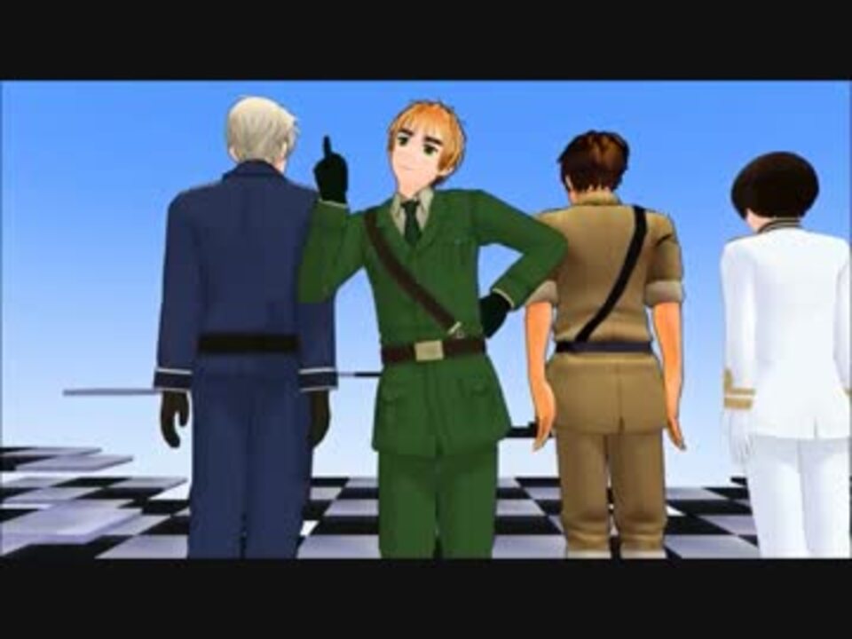 3作目になります。前作→<a href="https://www.nicovideo.jp/watch/sm18232510" class="watch">sm18232510</a><br />ポーカーフェイスを躍らせたいと考えていたら、いつの間にかアルマダ組にケンカさせてました。<br />表情つけるのは初めてで、難しかったです・・・<br />英&西(裏でケンカ) 普(ひたすら楽しむ) 日(すべてお見通しだが空気を読む)という感じで作りました。楽しんでいただけたら嬉しいです。<br />[お借りしたもの]音源:<a href="https://www.nicovideo.jp/watch/sm12894209" class="watch">sm12894209</a><br />モーション:あひるP様(一部変更あり)<br />カメラ:koh様(一部変更あり)<br />モデル:hana様、kanaha様、ファミぶんP様<br />ステージ:モノクロステージ、グラデーションドーム<br /><br /><br />プーと爺が見てない時は要注意・・・<br /><br /><font size="4">2525再生記念 裏話(画像配布)<a href="https://www.nicovideo.jp/watch/sm18388927" class="watch">sm18388927</a></font><br /><font color="red">続きました→</font><a href="https://www.nicovideo.jp/watch/sm18535736" class="watch">sm18535736</a>