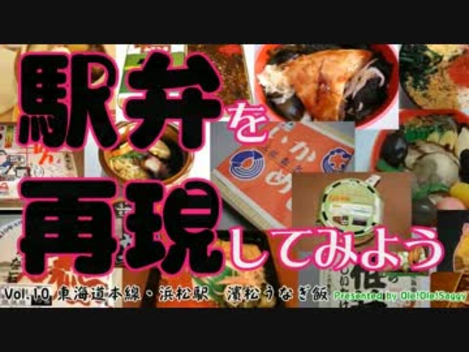 今回は、人生初!うなぎを捌いて、駅弁業者有数の名門「自笑亭」の「うなぎ飯」と「ひつまぶし弁当」を再現してみました。<br />(活きたまま捌くので、苦手な形は2:00頃までとばしていただくようお願いします。)初めてのうなぎ捌きなんで、ヘタです、マジで。<br /><br />バックに流れるのは「ヤマハ吹奏楽団浜松」の演奏です。ここ入団して、音楽どころの浜松に住みたかったんだ、厨房の頃・・・<br />><br />前:新横浜駅・シウマイ弁当→<a href="https://www.nicovideo.jp/watch/sm18231395" class="watch">sm18231395</a> 後:いずっぱこ修善寺駅・あじ寿司→<a href="https://www.nicovideo.jp/watch/sm18522641" class="watch">sm18522641</a><br />浜名湖近辺→<a href="https://www.nicovideo.jp/watch/sm8507706" class="watch">sm8507706</a> だしカレー丼→<a href="https://www.nicovideo.jp/watch/sm17819822" class="watch">sm17819822</a><br />車載動画・旅行記・料理→<a href="https://www.nicovideo.jp/mylist/18096776" target="_blank" rel="noopener">mylist/18096776</a> 鉄道前面展望・最新→<a href="https://www.nicovideo.jp/mylist/10006385" target="_blank" rel="noopener">mylist/10006385</a> 総合駅→<a href="https://www.nicovideo.jp/user/5903512" target="_blank" rel="noopener">user/5903512</a><br /><br />北海道~九州・普通列車の旅・展開中!→<a href="https://www.nicovideo.jp/watch/sm17047310" class="watch">sm17047310</a>(稚内)から
