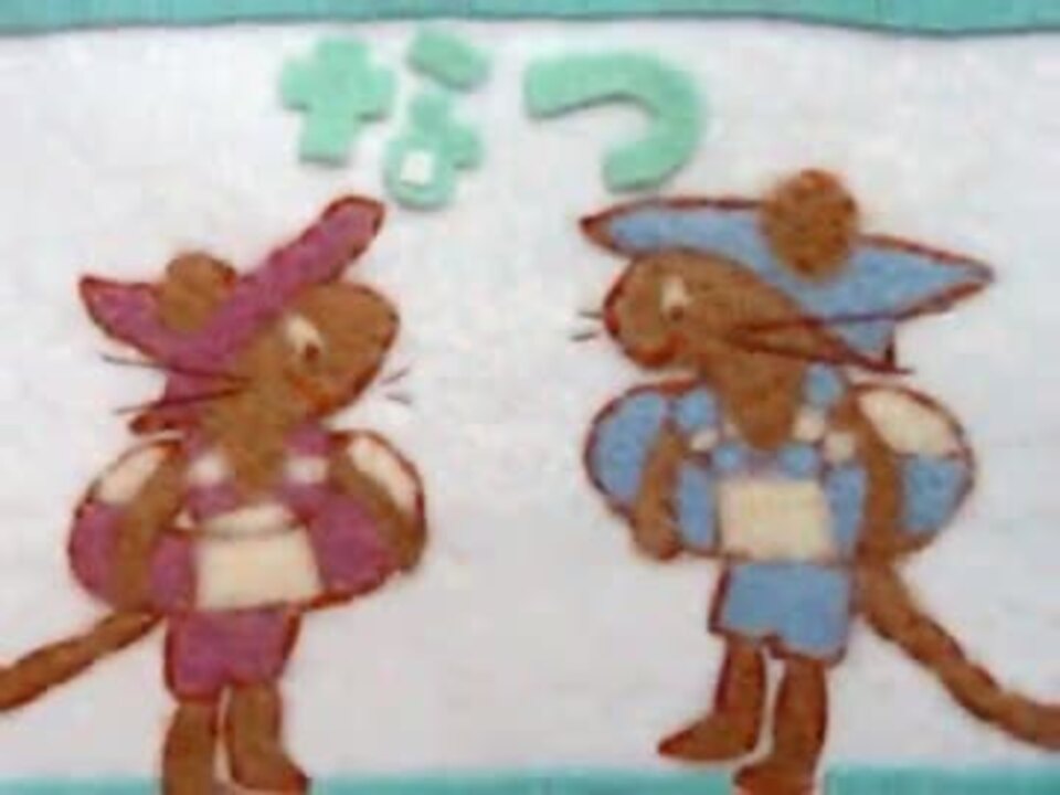 まー暑中見舞いなんて 出す習慣ないんですけどね お借りしたBGM <a href="https://www.nicovideo.jp/watch/sm4030642" class="watch">sm4030642</a> 参考にしました:ぐりとぐらのかいすいよく*はじめての羊毛フェルトししゅう 他にも羊毛フェルトで作ってます<a href="https://www.nicovideo.jp/mylist/28299635" target="_blank" rel="noopener">mylist/28299635</a>