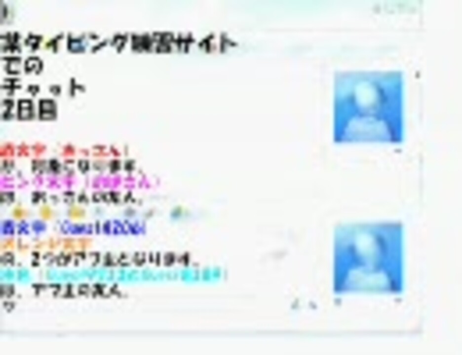 12歳の小学生とチャットをしてみた。2日目です。水色文字見え難いです、すみません。文字色:黒→その他、赤→12歳(対象)、ピンク→赤の知り合い、青→自分、水色→青の友達、オレンジ→編集中の自分※出てくる名前は全て仮名です。あと、自分タイピング速く無いです。ハンディは相手が相手だったので…w1日目→<a href="https://www.nicovideo.jp/watch/sm1809006" class="watch">sm1809006</a>