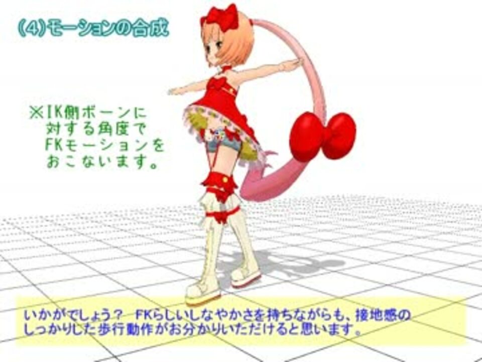 「相対FKモーション」の概要と、歩行モーションへの応用方法です。<br />ボーン構造のカスタマイズについてはかなり簡素ですが、ぶっちゃけそぼろ氏のプラグイン使うのが手っ取り早いです。準標準ボーン追加プラグイン→<a href="https://www.nicovideo.jp/watch/sm14956092" class="watch">sm14956092</a><br />(素敵なプラグインに感謝です。でも勝手に紹介してよかったのだろうか)<br /><br />転送先で腕への応用も簡素ですが紹介してます。<br /><br />◆公開動画一覧→<a href="https://www.nicovideo.jp/mylist/27911186" target="_blank" rel="noopener">mylist/27911186</a>