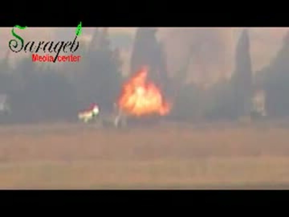 【シリア】 対戦車ミサイルの直撃を受け炎上する戦車