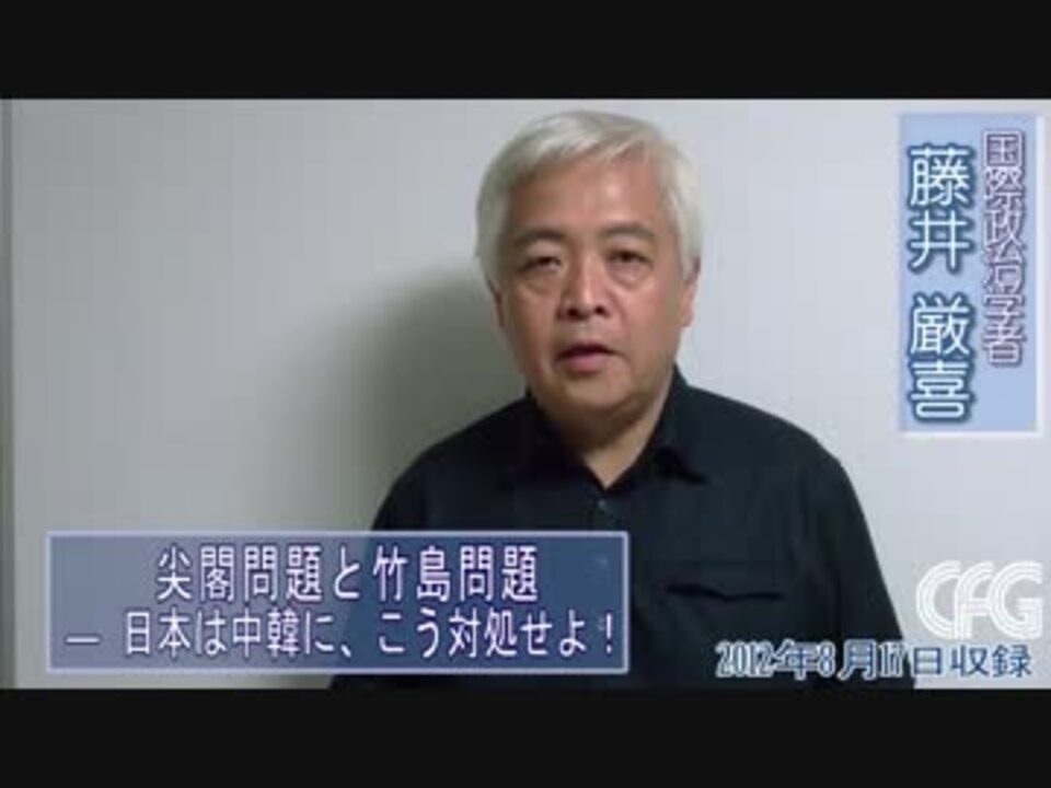 Youtube版より転載 <br /><a href="https://www.youtube.com/watch?v=NP_n0I247Qg" target="_blank" rel="noopener nofollow">https://www.youtube.com/watch?v=NP_n0I247Qg</a><br />尖閣問題と竹島問題―日本は中韓に、こう対処せよ!香港の活動家が乗船した抗議船「啓豊二號」が15日、日本の領海内に侵入し、沖縄県・尖閣諸島の魚釣島に活動家らが上陸した。<br />★藤井厳喜Twitter <a href="http://twitter.com/GemkiFujii" target="_blank" rel="noopener nofollow">http://twitter.com/GemkiFujii</a><br />★藤井厳喜Google+ <br /><a href="https://plus.google.com/105888168306663662879/posts" target="_blank" rel="noopener nofollow">https://plus.google.com/105888168306663662879/posts</a> <br />★ブログ<br /><a href="http://www.gemki-fujii.com/blog/" target="_blank" rel="noopener nofollow">http://www.gemki-fujii.com/blog/</a><br />★LinkedIn <br /><a href="http://www.linkedin.com/profile/view?id=179302285&trk=tab_pro" target="_blank" rel="noopener nofollow">http://www.linkedin.com/profile/view?id=179302285&trk=tab_pro</a><br />藤井厳喜先生関連→<a href="https://www.nicovideo.jp/mylist/17705985" target="_blank" rel="noopener">mylist/17705985</a>