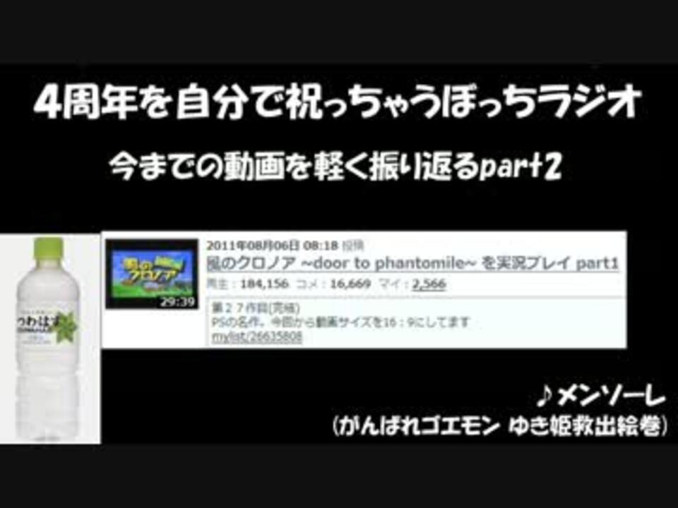 4周年おめでとう俺!(3回目) <br />過去に1周年と3周年を自分で祝うという事をやらかしているので今回も自分でやろう<br />という事でまたもや完成したラジオもどき動画<br />投稿時間的には間に合いませんでしたが暇な人だけ見てやってね<br />去年の動画→<a href="https://www.nicovideo.jp/watch/sm15393433" class="watch">sm15393433</a><br /><br /><b>~プログラム~</b><br />あいさつ 1:21~<br />今までの動画を軽く振り返るpart2 2:42~<br />皆さんからのTwitterでの質問のお返事 20:23~<br />今後実況したいなと思ったゲーム 27:16~<br />これからの活動について 29:46~<br /><br />【5周年ラジオ】→<a href="https://www.nicovideo.jp/watch/sm21657533" class="watch">sm21657533</a><br /><br />【ブログ】→<a href="http://tsuwahasu.blog66.fc2.com/" target="_blank" rel="noopener nofollow">http://tsuwahasu.blog66.fc2.com/</a> 【TwitterID】→tsuwahasu で検索<br />【今まで上げた動画】→<a href="https://www.nicovideo.jp/mylist/11694132" target="_blank" rel="noopener">mylist/11694132</a><br />【更新報告マイリスト】→<a href="https://www.nicovideo.jp/mylist/8052309" target="_blank" rel="noopener">mylist/8052309</a><br />【ニコ生実況】→co10072