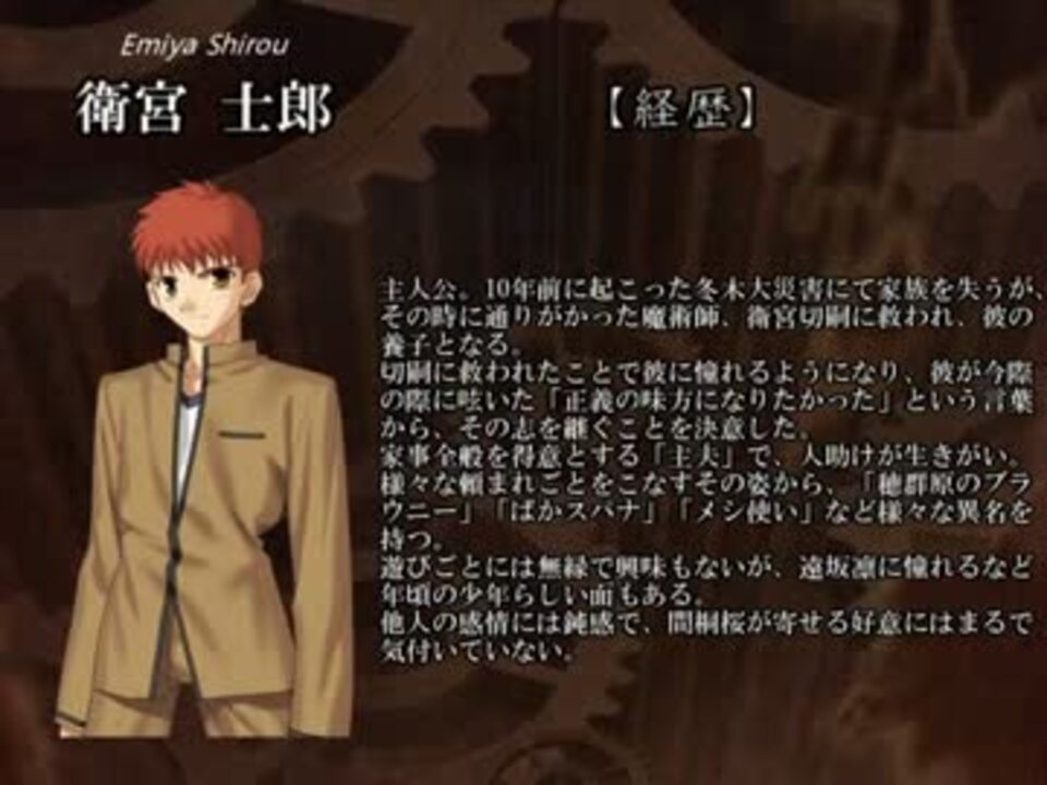 <font color="red">※ネタバレ注意!</font><br /><br />へっぽこがコンマテやら何やらを読み漁った末に作った動画。<br />なんでや…なんでおまけがこんなに長くなってしもうたんや…<br /><br /><br />第四回テーマ「聖杯戦争」<br /><br /><a href="#" class="seekTime" data-seekTime="0:38" onclick="seekNicoPlayer('#0:38'); return false;">#0:38</a> 「『聖杯』とは何か?」<br /><a href="#" class="seekTime" data-seekTime="1:24" onclick="seekNicoPlayer('#1:24'); return false;">#1:24</a> 「『聖杯戦争』とは何か?」<br /><a href="#" class="seekTime" data-seekTime="3:58" onclick="seekNicoPlayer('#3:58'); return false;">#3:58</a> 「聖杯戦争のしくみ」<br /><br /><a href="#" class="seekTime" data-seekTime="8:40" onclick="seekNicoPlayer('#8:40'); return false;">#8:40</a> 「マスター」<br /><a href="#" class="seekTime" data-seekTime="13:08" onclick="seekNicoPlayer('#13:08'); return false;">#13:08</a> 「サーヴァント」<br /><br /><a href="#" class="seekTime" data-seekTime="23:58" onclick="seekNicoPlayer('#23:58'); return false;">#23:58</a> おまけ マスター一覧(SN、Zero、Hollowのみ)<br /><br /><br />前 <a href="https://www.nicovideo.jp/watch/sm17952954" class="watch">sm17952954</a> <a href="https://www.nicovideo.jp/mylist/32202952" target="_blank" rel="noopener">mylist/32202952</a>