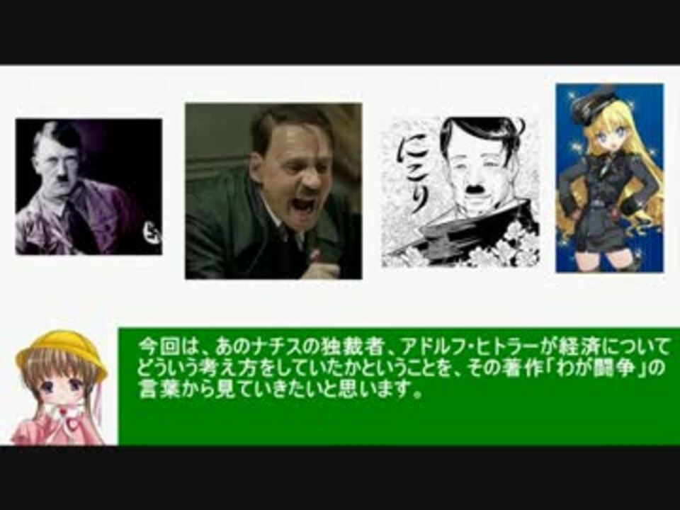 今回は文章の表示がメインなので、適宜一時停止推奨です。<br />動画内の「わが闘争」の記述は、角川文庫版(平野一郎 将積茂 訳)から引用しています。<br /><br />BGM TVアニメ「とある科学の超電磁砲」より<br />・帰る場所<br />・どうしようもない気持ち<br /><br />参考サイト<br />新世紀のビッグブラザーへ blog <a href="http://ameblo.jp/takaakimitsuhashi/" target="_blank" rel="noopener nofollow">http://ameblo.jp/takaakimitsuhashi/</a><br />代表戸締役 ◆jJEom8Ii3Eの妄言 <a href="http://blogs.yahoo.co.jp/daitojimari" target="_blank" rel="noopener nofollow">http://blogs.yahoo.co.jp/daitojimari</a><br />廣宮孝信の反「国家破産」論 ブログ <a href="http://grandpalais1975.blog104.fc2.com/" target="_blank" rel="noopener nofollow">http://grandpalais1975.blog104.fc2.com/</a><br /><br />制作物<br /> 政治系MAD動画→<a href="https://www.nicovideo.jp/mylist/17279420" target="_blank" rel="noopener">mylist/17279420</a><br /> 経済講座シリーズ→<a href="https://www.nicovideo.jp/mylist/19534280" target="_blank" rel="noopener">mylist/19534280</a><br /> 政治系以外の動画→<a href="https://www.nicovideo.jp/mylist/22564233" target="_blank" rel="noopener">mylist/22564233</a><br /><br />前回「大恐慌への対応・ドイツ編」<a href="https://www.nicovideo.jp/watch/sm18718811" class="watch">sm18718811</a><br />次回「日本と大恐慌・金解禁編」<a href="https://www.nicovideo.jp/watch/sm18891763" class="watch">sm18891763</a>