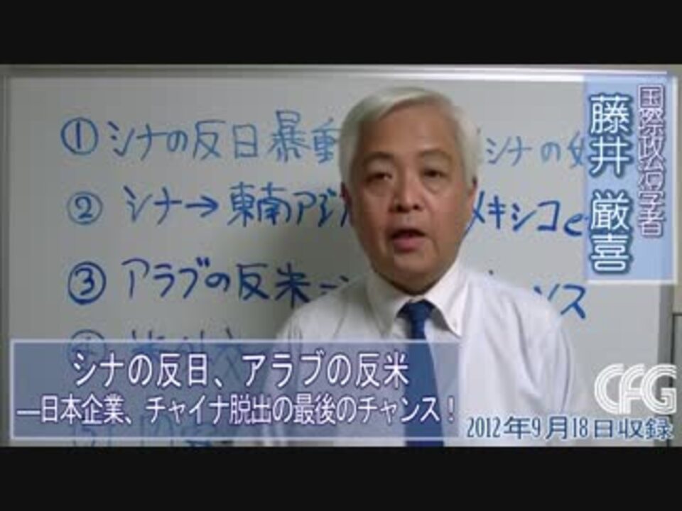 Youtube版より転載<br /> <a href="http://www.youtube.com/watch?v=gOIHHxZPuFA" target="_blank" rel="noopener nofollow">http://www.youtube.com/watch?v=gOIHHxZPuFA</a><br />中国の過激な反日暴動が収まらない…<br />参考:反米デモのリアルタイム地図は(Google作成) <a href="https://maps.google.com/maps/ms?msid=201645180959880549419.0004c9a894dfb66def...★財務行政へのご意見・ご要望の受付は" target="_blank" rel="noopener nofollow">https://maps.google.com/maps/ms?msid=201645180959880549419.0004c9a894dfb66def...★財務行政へのご意見・ご要望の受付は</a> <a href="https://www2.mof.go.jp/enquete/ja/index.php★外務省へのご意見の受付けは" target="_blank" rel="noopener nofollow">https://www2.mof.go.jp/enquete/ja/index.php★外務省へのご意見の受付けは</a> <a href="https://www3.mofa.go.jp/mofaj/mail/qa.html" target="_blank" rel="noopener nofollow">https://www3.mofa.go.jp/mofaj/mail/qa.html</a><br />★藤井厳喜Twitter <a href="http://twitter.com/GemkiFujii" target="_blank" rel="noopener nofollow">http://twitter.com/GemkiFujii</a><br />★藤井厳喜Google+ <a href="https://plus.google.com/105888168306663662879/posts" target="_blank" rel="noopener nofollow">https://plus.google.com/105888168306663662879/posts</a> <br />★ブログ関連ページ: <a href="http://www.gemki-fujii.com/blog/" target="_blank" rel="noopener nofollow">http://www.gemki-fujii.com/blog/</a><br />★LinkedIn <a href="http://www.linkedin.com/profile/view?id=179302285&trk=tab_pro" target="_blank" rel="noopener nofollow">http://www.linkedin.com/profile/view?id=179302285&trk=tab_pro</a><br />藤井厳喜先生関連→<a href="https://www.nicovideo.jp/mylist/17705985" target="_blank" rel="noopener">mylist/17705985</a>