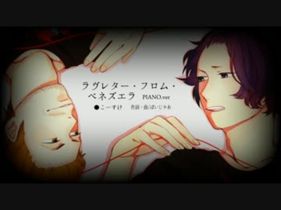 <font size="6"><font color="red">同日更新→<a href="https://www.nicovideo.jp/watch/sm18937714" class="watch">sm18937714</a></font></font><br /><br />どうもこーすけです。<br />今回は私の良き友人であるドグマ風見さんのために一発撮りで歌わせていただきました。<br />元ネタ→【SITEQUBE】してくべ&生放送【ドグマの今夜も眠れNight】【co293776】<br />弾幕【ピロピロピロピロピロピッピッピッピピーーーヨーー♪@外星電脳科技有限公司】<br />コメントできない方→<a href="https://www.nicovideo.jp/watch/sm18937534" class="watch">sm18937534</a><br /><br />曲:ラブレター・フロム・ベネズエラ<br />作曲&編曲:ぼいじゃあ <a href="https://www.nicovideo.jp/mylist/21148704" target="_blank" rel="noopener">mylist/21148704</a><br />MIX:Avarice<br />PV:Jr<br />イラスト:有志<br /><br /><font color="#ff0000">【ピエロ】→<a href="https://www.nicovideo.jp/watch/sm14965680" class="watch">sm14965680</a> 【恋は戦争】→<a href="https://www.nicovideo.jp/watch/sm17118520" class="watch">sm17118520</a> コミュ→co1519666</font><br /><br />本業(実況)最終兵器俺達→<a href="https://www.nicovideo.jp/mylist/15923690" target="_blank" rel="noopener">mylist/15923690</a> 一番気合入れてる実況→<a href="https://www.nicovideo.jp/mylist/25607405" target="_blank" rel="noopener">mylist/25607405</a><br />何かありましたら→<a href="http://twitter.com/kosuke_saiore" target="_blank" rel="noopener nofollow">http://twitter.com/kosuke_saiore</a><br /><br />