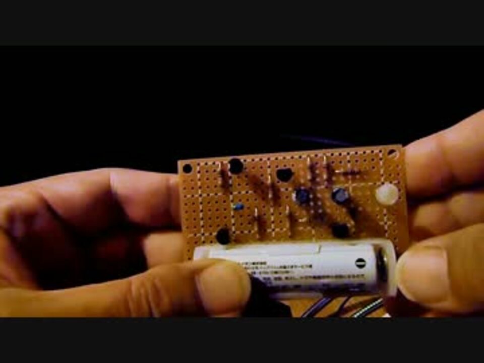 Sorry, but only in Japanese. No English version.<br /><br />乾電池1本で白色LEDを点滅させてみた。<br /><br />前作(<a href="https://www.nicovideo.jp/watch/sm18905253" class="watch">sm18905253</a>)のリベンジのつもりだったのだが・・・<br /><br /><b>次作 <a href="https://www.nicovideo.jp/watch/sm19028671" class="watch">sm19028671</a> <i><u>続編</u>ができました!</i></b><br /><br />まぁ、とりあえず、回路の解説でもして気を紛らわせてみた。<br /><br />blackberryツイッター @blackberry_2525<br /><br />公開マイリス <a href="https://www.nicovideo.jp/mylist/29428295" target="_blank" rel="noopener">mylist/29428295</a><br /><br />ブログ <a href="http://profile.ameba.jp/ntomi2005/" target="_blank" rel="noopener nofollow">http://profile.ameba.jp/ntomi2005/</a><br /><br /><br />回路出典:「電子マスカット」 <a href="http://www.zea.jp/audio/" target="_blank" rel="noopener nofollow">http://www.zea.jp/audio/</a><br /><br />使用BGM <a href="https://www.nicovideo.jp/watch/sm3505467" class="watch">sm3505467</a> <a href="https://www.nicovideo.jp/watch/sm2184189" class="watch">sm2184189</a> <br /><br />