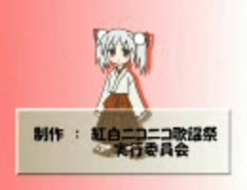 <font size="+1" color="red"><b>紅白ニコニコ歌謡祭2008は12月27日より公開!<a href="https://www.nicovideo.jp/watch/sm5669980" class="watch">sm5669980</a></b></font><br />この企画は皆さんから募集した「歌ってみた」「演奏してみた」動画で年末年始をニコニコしてすごそうというものです。<br />これから毎日順次うpしていきますので、のんびりとお楽しみください。<br />公式ウィキです <a href="http://www29.atwiki.jp/nikoniko_kouhaku/" target="_blank" rel="noopener nofollow">http://www29.atwiki.jp/nikoniko_kouhaku/</a> ご意見ご感想ご提言お待ちしてます。<br />前:<a href="https://www.nicovideo.jp/watch/sm1899739" class="watch">sm1899739</a> 次:<a href="https://www.nicovideo.jp/watch/sm1908090" class="watch">sm1908090</a><br />一覧マイリスト:<a href="https://www.nicovideo.jp/mylist/1600441" target="_blank" rel="noopener">mylist/1600441</a>