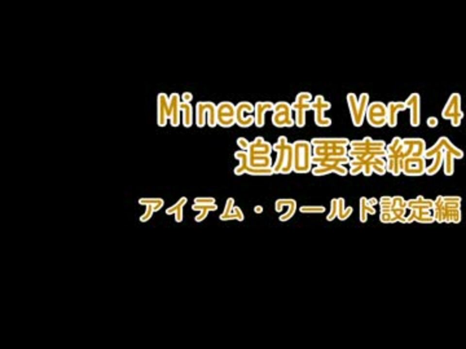 Minecraft 12w41b 12w42a 1.4Prerelease版を使い、1.4<br />アップデートでどのようなものが追加されるのかをゆっくり<br />ボイスを使って紹介します。<br />正式版で変更される箇所があるかもしれませんが、その際は<br />下の投稿者コメントにて修正いたします。<br /> <br /><s>動画作成途中で編集データが3割飛んだときは発狂しました。</s><br />黒い頭、ネザースターについて知っている方は余計な混乱を防ぐため、<br />それ関連のコメントを控えるようにお願いします。<br />システム編 <a href="https://www.nicovideo.jp/watch/sm19258092" class="watch">sm19258092</a> マイリスト <a href="https://www.nicovideo.jp/mylist/34300394" target="_blank" rel="noopener">mylist/34300394</a>