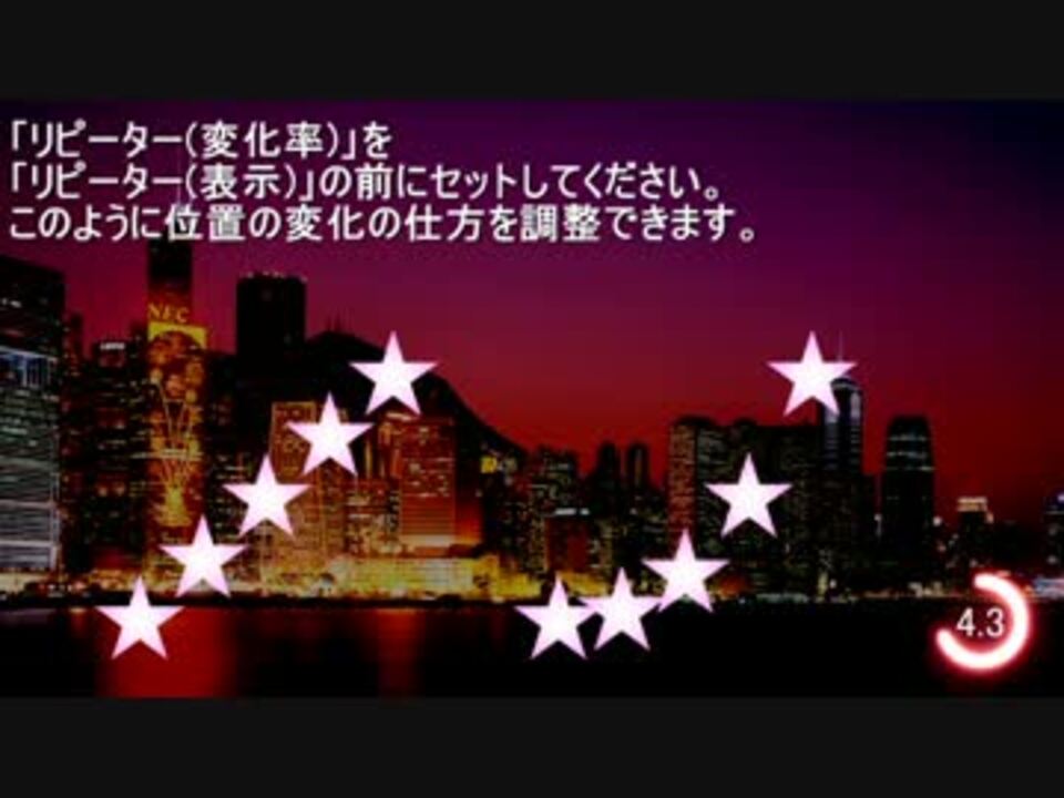 簡易リピーターの改良版です。<br />スクリプトを以下からDLしてください。<br /><a href="https://tim3.web.fc2.com/sidx.htm#EsyRpt" target="_blank" rel="noopener nofollow">https://tim3.web.fc2.com/sidx.htm#EsyRpt</a><br /><br />少し改良してあります。<br />基本的な使い方は<a href="https://www.nicovideo.jp/watch/sm16301834" class="watch">sm16301834</a>と同じです。<br /><br />音楽(フリー素材)→プラスチックアドベンチャー<br /><br />自作AviUtlスクリプト→<a href="https://www.nicovideo.jp/mylist/25550138" target="_blank" rel="noopener">mylist/25550138</a><br />AviUtlコミュ→co556462<br />さつきさんのユーザー記事→<a href="http://dic.nicovideo.jp/u/2787743" target="_blank" rel="noopener nofollow">http://dic.nicovideo.jp/u/2787743</a><br />AviUtlスクリプト Wiki→<a href="http://aviutlscript.wiki.fc2.com/" target="_blank" rel="noopener nofollow">http://aviutlscript.wiki.fc2.com/</a> <br />