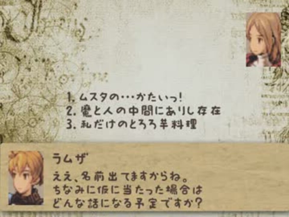 <font size="3"><b>FFTがもしももう少しだけハッピーな展開だったらどうなってたんだろう。</b></font><br />今回は地下書庫地下2階をクリア。リセット回数7。ちなみに妄想主はFFTの原作ストーリー大好き。<br /><br /><b>前回</b>→<a href="https://www.nicovideo.jp/watch/sm19312374" class="watch">sm19312374</a> <b> ハッピーなマイリスト</b>→<a href="https://www.nicovideo.jp/mylist/32464437" target="_blank" rel="noopener">mylist/32464437</a> <b>次回</b>→<a href="https://www.nicovideo.jp/watch/sm19416191" class="watch">sm19416191</a><br /><b>ハッピーなCM</b>→<a href="https://www.nicovideo.jp/mylist/35684796" target="_blank" rel="noopener">mylist/35684796</a><br /><b><font color="blue">Twitter</font></b>→<a href="http://twitter.com/mousouprincess2" target="_blank" rel="noopener nofollow">http://twitter.com/mousouprincess2</a><br /><b>おたより</b>→mousouprincess.<a href="https://ch.nicovideo.jp/channel/ch2" target="_blank" rel="noopener">ch2</a>@gmail.com<br /><br /><b>視聴者さんのイラスト</b>→<a href="https://seiga.nicovideo.jp/clip/809281" target="_blank" rel="noopener">clip/809281</a><br />