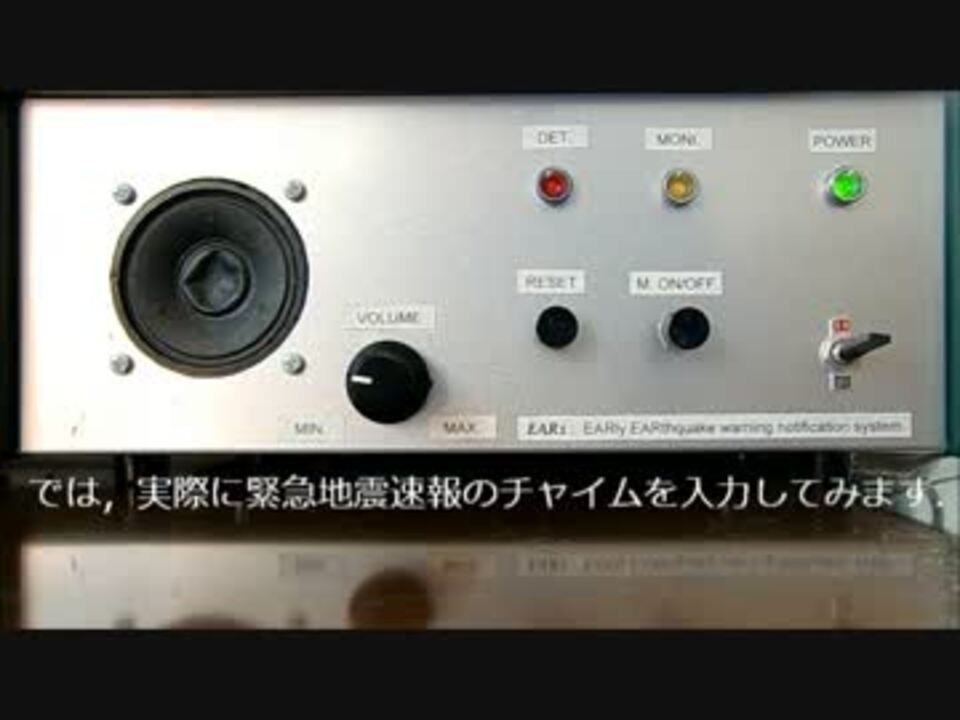 緊急地震速報のあのチャイムを検出する装置を作ってみました.<br />チャイムを検出すると内蔵アンプのミュートが解除され,スピーカからチャイムが聞こえます.<br />動画内でスピーカのコーンがつぶれてますが,学祭での展示中に押されてしまったようです.<br />押したくなる気持ちもわかるんですけれどね.<br /><br />BGMと効果音は次のサイトからお借りしました.<br />フリーBGM・音楽素材MusMus <a href="http://musmus.main.jp/" target="_blank" rel="noopener nofollow">http://musmus.main.jp/</a><br />小森平の使い方 <a href="http://taira-komori.jpn.org/" target="_blank" rel="noopener nofollow">http://taira-komori.jpn.org/</a><br /><br />2013/01/06追記<br />回路図の高解像度版を公開しました.<br />緊急地震速報検出装置EARs回路図 | yutapon14 [pixiv] <a href="http://www.pixiv.net/member_illust.php?mode=medium&illust_id=32683842" target="_blank" rel="noopener nofollow">http://www.pixiv.net/member_illust.php?mode=medium&illust_id=32683842</a>