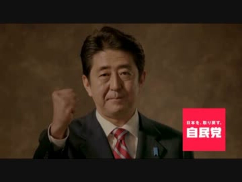 取り戻す!<br />麻生自民党CM「生活対策篇」→<a href="https://www.nicovideo.jp/watch/1228270610" class="watch">watch/1228270610</a><br />麻生自民党CM「日本に宣言、安心篇」→<a href="https://www.nicovideo.jp/watch/1250239083" class="watch">watch/1250239083</a><br />麻生自民党CM「日本に宣言 景気篇」→<a href="https://www.nicovideo.jp/watch/1250238941" class="watch">watch/1250238941</a><br />麻生自民党CM「さらなる景気対策篇」→<a href="https://www.nicovideo.jp/watch/1227579114" class="watch">watch/1227579114</a><br />小泉進次郎自民党CM「いちばん!篇」→<a href="https://www.nicovideo.jp/watch/1277519979" class="watch">watch/1277519979</a><br />谷垣&小泉自民党CM「いちばん!篇」→<a href="https://www.nicovideo.jp/watch/1278051510" class="watch">watch/1278051510</a><br />谷垣禎一自民党CM「いちばん!篇」→<a href="https://www.nicovideo.jp/watch/1276943747" class="watch">watch/1276943747</a>
