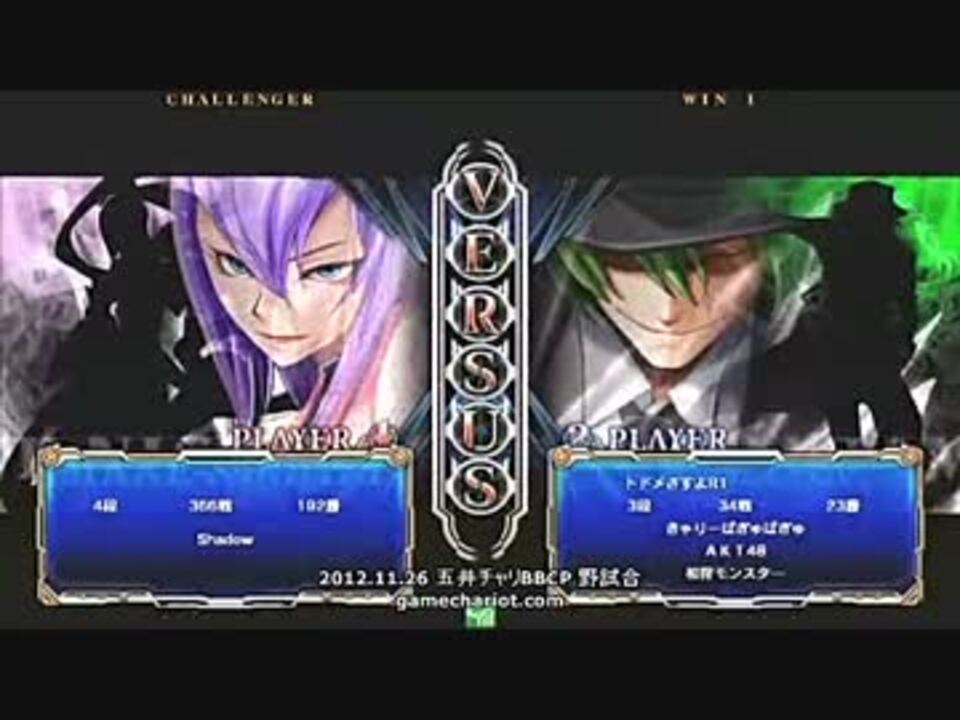 今回は11月26日に行われた五井チャリBBCP野試合より。<br />ここでは「Shadow(アマネ)」と「ぶっぱ(ハザマ)」のガチ対戦を。この日はぶっぱが休みで遊びに来ていました。<br />Shadowは25日に俺のハザマとガチっており、かたやぶっぱはアマネ戦デビューがこの日という事ですので序盤は分からん殺しされまくり。<br />最後の試合は色んなキャラを使った後にハザマで再戦した時のものですが切り返し無いとやはりキツいか。<br /><br />【PR】12月の五井チャリBBイベントはBBCP尽くし!毎週水曜19時からランバト、毎週土曜17時からは週末大会を開催。2.16.30(日)15時からはBBCP講習会を開催します!31日は年越しで…?<br /><br />次( ・∀・)っ<a href="https://www.nicovideo.jp/watch/sm19470182" class="watch">sm19470182</a> ゲームチャリオット公式サイト( ・∀・)っ<a href="http://gamechariot.com/" target="_blank" rel="noopener nofollow">http://gamechariot.com/</a> <a href="https://www.nicovideo.jp/mylist/19729418" target="_blank" rel="noopener">mylist/19729418</a>