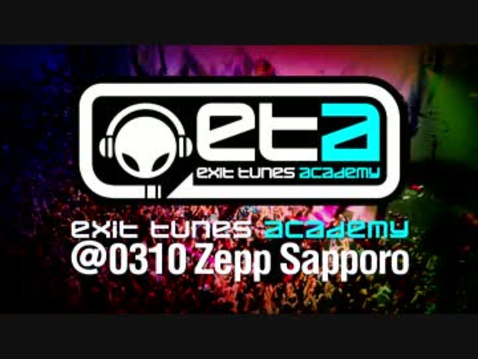 <b>開場前グッズ販売は会場内ロビーにてAM10時よりスタート!!<br />※チケットをお持ちでない方もご利用いただけます。<br /></b><br />【タイトル】EXIT TUNES ACADEMY@0310Zepp Sapporo<br />【公演日】2013年3月10日(日)<br />【会場】Zepp Sapporo(札幌)<br />【開場/開演】開場15:00/開演16:00<br />【チケット料金】<br />eta.jp会員特別 2,480円(税込2,604円)<br />コミュニティ先行 1,980円(税込2,079円)<br />※1/6(日)23時まで<br /><br />【出演者】Another Infinity feat.Mayumi Morinaga/__(アンダーバー)/164/ぐるたみん/しゃむおん/スズム(あすかそろまにゃーず/KEMU VOXX)/赤飯/そらる/DJ UTO/デッドボールP/灯油/松下/まふまふ/みきとP/YM<br /><br /><b>12/29~12/31開催のコミックマーケット83にて限定ETAアーティストグッズを販売!!<br />詳細はC83特設ページをチェック!!</b><br />HP : exittunes.com/event/c83