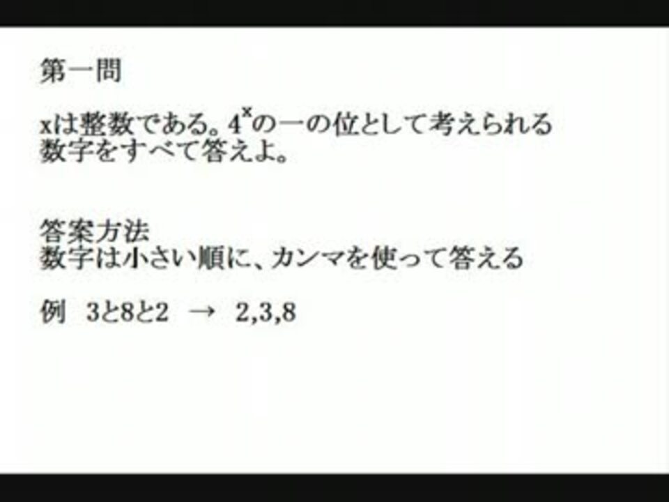 こんにちは、数学が好きすぎてたまらない、高校一年生です。今回は数学の問題を4つ作ってみました。ぜひ、解いてみてください。(主は、数学は好きですが、得意ではありません。ですので、間違いがあるかもしれませんが、お許しください。) その他の問題→<a href="https://www.nicovideo.jp/mylist/35442470" target="_blank" rel="noopener">mylist/35442470</a><br />Twitter→<a href="http://twitter.com/takahashi_math" target="_blank" rel="noopener nofollow">http://twitter.com/takahashi_math</a>