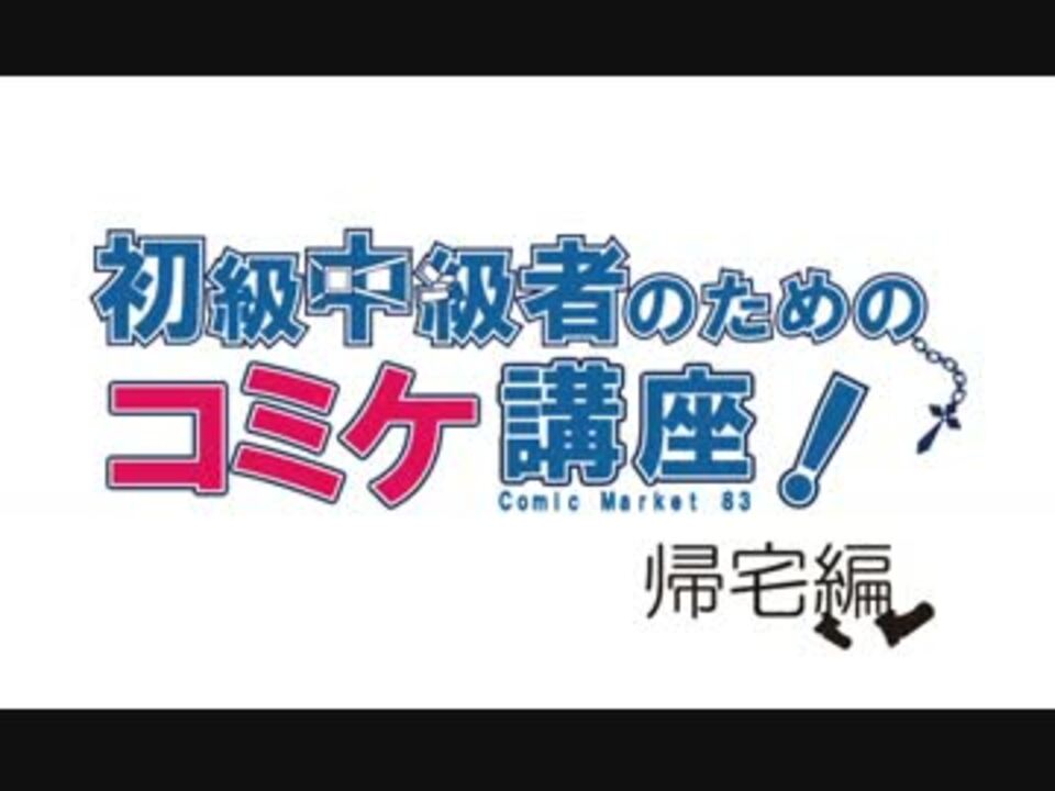 お待たせしました。<br />本動画はC83に参加する方向けに製作したコミケ講座動画です。<br />今回のテーマは帰宅編です。会場からの帰宅手段や公共交通機関の利用についての紹介と、今回のコミケの概要を紹介しています。少しでもこの動画がお役に立てば幸いです。<br /><br />前回<a href="https://www.nicovideo.jp/watch/sm18539242" class="watch">sm18539242</a> 次回<a href="https://www.nicovideo.jp/watch/sm21516204" class="watch">sm21516204</a> その他製作した動画<a href="https://www.nicovideo.jp/mylist/25164207" target="_blank" rel="noopener">mylist/25164207</a><br /><b><font color="red">《15/8/13更新》C88用コミケ講座動画投稿しました!<a href="https://www.nicovideo.jp/watch/sm26924390" class="watch">sm26924390</a></font></b>