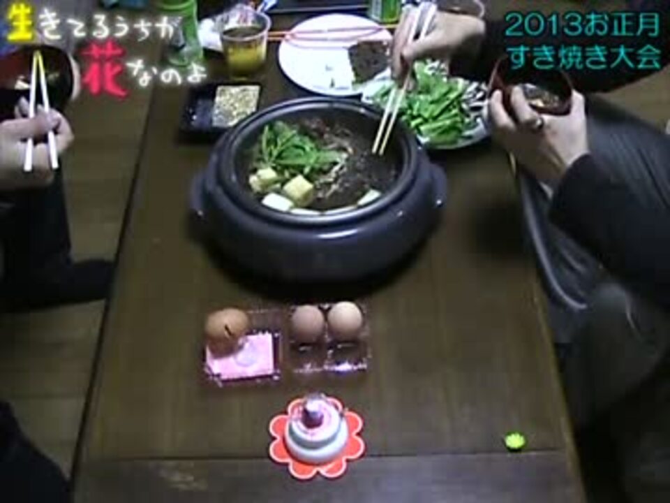 毎年恒例の鍋を食う動画です。<br />カメラがまわっていると動くギャラクシー君とまわってると動かないロイヤル。二人合わせてやっとプラスマイナスゼロ。<br />明日はこの動画の最終回とコミュ限定動画(co5242)を投稿予定です。<br /><br />前→<a href="https://www.nicovideo.jp/watch/sm19734388" class="watch">sm19734388</a>・次→<a href="https://www.nicovideo.jp/watch/sm19748197" class="watch">sm19748197</a><br />生きてるうちが花なのよ<a href="https://www.nicovideo.jp/mylist/15794401" target="_blank" rel="noopener">mylist/15794401</a>・すき焼き <a href="https://www.nicovideo.jp/mylist/35296185" target="_blank" rel="noopener">mylist/35296185</a><br />ギャラクシー全動画リスト<a href="https://www.nicovideo.jp/mylist/9897327" target="_blank" rel="noopener">mylist/9897327</a>・ロイヤル全曲リスト<a href="https://www.nicovideo.jp/mylist/16891101" target="_blank" rel="noopener">mylist/16891101</a><br />
