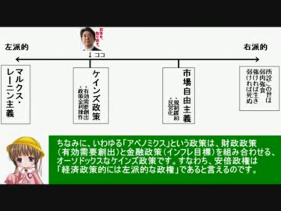 右だろうが左だろうが斜め上だろうが、デフレを止めて日本経済を発展させてくれればそれでいいんですけどね<br /><br />BGM TVアニメ「とある科学の超電磁砲」より<br />・Tea Time<br />・あのときの約束<br /><br />参考サイト<br />新世紀のビッグブラザーへ blog <a href="http://ameblo.jp/takaakimitsuhashi/" target="_blank" rel="noopener nofollow">http://ameblo.jp/takaakimitsuhashi/</a><br />代表戸締役 ◆jJEom8Ii3Eの妄言 <a href="http://blogs.yahoo.co.jp/daitojimari" target="_blank" rel="noopener nofollow">http://blogs.yahoo.co.jp/daitojimari</a><br />廣宮孝信の「国の借金」“新常識”<a href="http://grandpalais1975.blog104.fc2.com/" target="_blank" rel="noopener nofollow">http://grandpalais1975.blog104.fc2.com/</a><br /><br />制作物<br /> 政治系MAD動画→<a href="https://www.nicovideo.jp/mylist/17279420" target="_blank" rel="noopener">mylist/17279420</a><br /> 経済講座シリーズ→<a href="https://www.nicovideo.jp/mylist/19534280" target="_blank" rel="noopener">mylist/19534280</a><br /> 政治系以外の動画→<a href="https://www.nicovideo.jp/mylist/22564233" target="_blank" rel="noopener">mylist/22564233</a><br /><br />前回「リスクと不確実性」<a href="https://www.nicovideo.jp/watch/sm19740350" class="watch">sm19740350</a><br />次回「フィリップス曲線」<a href="https://www.nicovideo.jp/watch/sm19765744" class="watch">sm19765744</a>