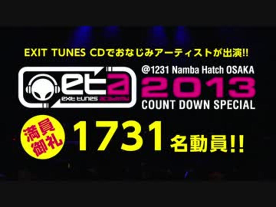 EXIT TUNES ACADEMY@1231 Namba Hatch OSAKA満員御礼!!<br />1,731名を動員!!<br /><br />[出演者]<br />__(アンダーバー)/164/伊東歌詞太郎/おさむらいさん/ぐるたみん/しゃむおん/スズム(あすかそろまにゃーず/KEMU VOXX)/Starving Trancer(Another Infinity) feat. Mayumi Morinaga/赤飯/そらる/蝶々P/DJ UTO/デッドボールP/灯油/松下/まふまふ/みきとP/りょーくん/recog/YM<br /><br /><b>NEXT ETA-----</b><br />1/19(土)Zepp Nagoya<br />1/27(日)Zepp Tokyo<br />2/17(日)Zepp Tokyo<br />3/10(日)Zepp Sapporo<br /><br />EXIT TUNES ACADEMY 11th Anniversary Special<br />4/7(日)さいたまスーパーアリーナ<br /><br />EXIT TUNES ACADEMY GOLDENWEEK ZEPP TOUR 2013 開催決定!!<br />前売券先行受付 1/16(水)START!!<br />4/29(祝・月)Zepp Sapporo<br />5/4(祝・土)Zepp Fukuoka<br />5/10(金)Zepp Nagoya<br />5/11(土)Zepp Namba<br />5/19(日)Zepp Tokyo