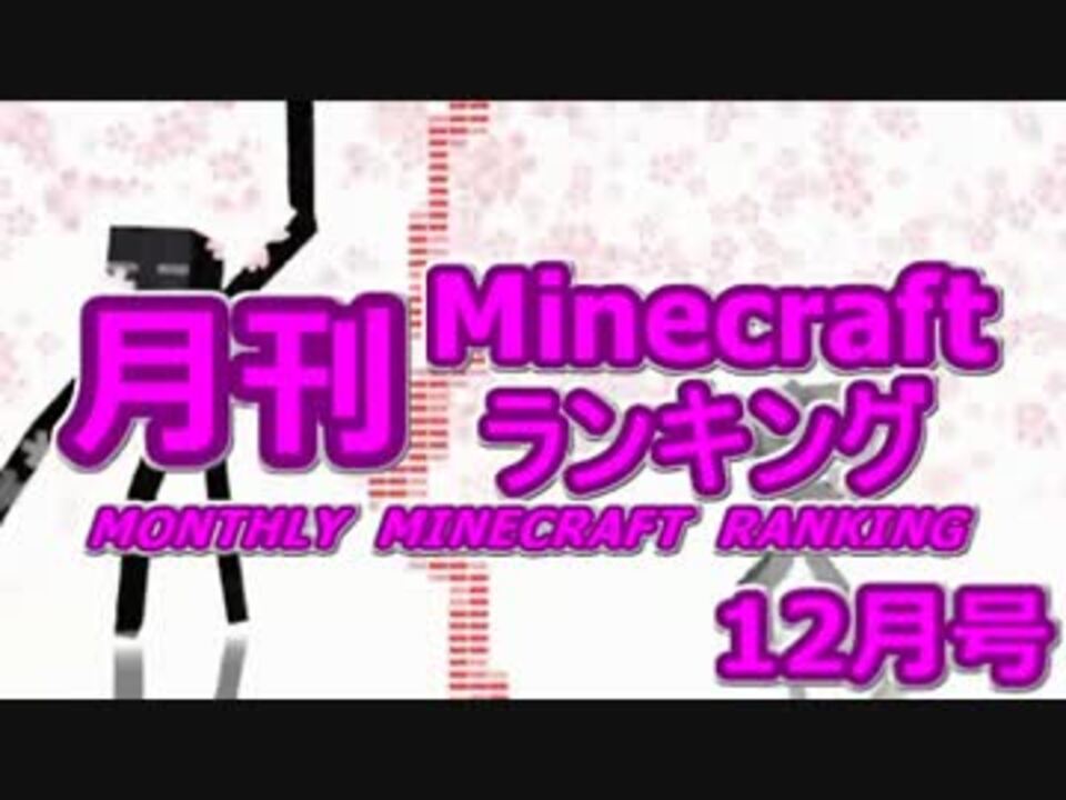 休憩しながらまったりどうぞ♪<br /><br />■集計方法:再生数+コメント数+マイリスト数×20で総合ポイントを算出<br />■集計期間:12月1日0時~12月31日23時59分まで<br />■集計対象:1.集計期間内に投稿された『Minecraft』タグがついたゲームカテゴリー作品。2.同じ投稿者のシリーズ動画が複数ランクインした場合、最もよいランキングのみ採用。3.同じ投稿者による動画でも別シリーズならばランキング。<br /><br />※12月号にランクインした1~100位の動画→<a href="https://www.nicovideo.jp/mylist/35321904" target="_blank" rel="noopener">mylist/35321904</a>、ピックアップ候補まとめ→<a href="https://www.nicovideo.jp/mylist/34902995" target="_blank" rel="noopener">mylist/34902995</a><br />1月号→<a href="https://www.nicovideo.jp/watch/sm20063440" class="watch">sm20063440</a>、バックナンバー→<a href="https://www.nicovideo.jp/mylist/30767547" target="_blank" rel="noopener">mylist/30767547</a><br /><br />※順位表示の背景に掲載させて頂くマイクラのスクリーンショットなどを募集中です→fondara@mail.goo.ne.jp<br />Minecraft紹介動画マイクラのすすめ!!オススメです→<a href="https://www.nicovideo.jp/watch/sm19794033" class="watch">sm19794033</a>