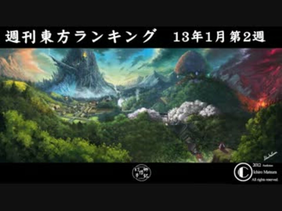 リニューアル計画進行中!ちょっと時間がかかりそう…。<br />EDイラスト募集中!詳しくはコミュニティで!<br /><br />■集計日時:2013年1月11日(金)<br />■集計期間:2013年1月4日(金) 6:00~1月11日(金) 6:00<br /><br />■今週のプレイリスト[<a href="http://dic.nicovideo.jp/v/sm19812479]" target="_blank" rel="noopener nofollow">http://dic.nicovideo.jp/v/sm19812479]</a><br />■週刊東方ランキング一覧[<a href="https://www.nicovideo.jp/mylist/10450068" target="_blank" rel="noopener">mylist/10450068</a>]<br />■週刊東方ランキングコミュニティ[co1671378]<br />[<a href="https://www.nicovideo.jp/watch/sm19752928" class="watch">sm19752928</a>]←先週 次週→[<a href="https://www.nicovideo.jp/watch/sm19864153" class="watch">sm19864153</a>]<br /><br />■週刊東方ランキング 歴代ランキング[<a href="http://nazr.in/Qx]" target="_blank" rel="noopener nofollow">http://nazr.in/Qx]</a><br />■週刊東方ランキング 結果一覧[<a href="http://nazr.in/Qy]" target="_blank" rel="noopener nofollow">http://nazr.in/Qy]</a><br /> ※短縮URLのリンク先はニコニコ大百科です。<br /><br />※集計の見直しもしてますけど、結構厳しいかも…