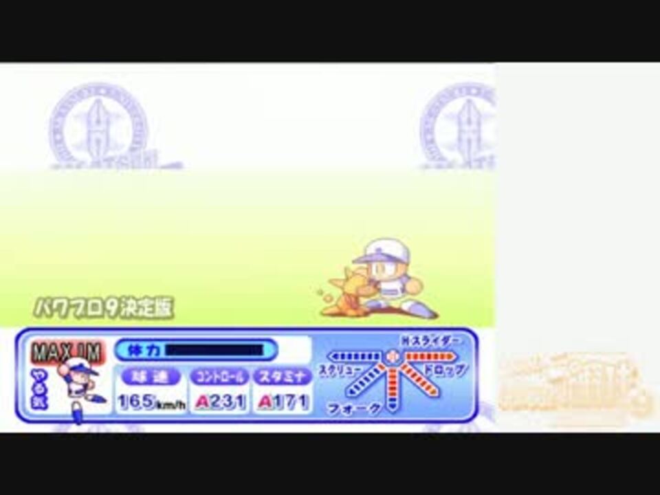 MAXIM「メジャー目指します」<br /><br />地方予選~甲子園1回戦まで<br />本当は最後までやりたかったんだけど尺が長くてな・・・<br /><br /><br />前回の動画をちっさくするようなクソ解説と能力表示(ぁ)は撤廃していっそスクリプトコメと16:9にして余裕をもたせたデザインに<br />次回で最終回なんですがね<br /><br />前:<a href="https://www.nicovideo.jp/watch/sm19567760" class="watch">sm19567760</a> 次:<a href="https://www.nicovideo.jp/watch/sm20946795" class="watch">sm20946795</a> マイリス:<a href="https://www.nicovideo.jp/mylist/30543459" target="_blank" rel="noopener">mylist/30543459</a><br /><br />あ、そうそうプラグイン変えたから直接録画にしました(一部レイヤーがおかしいことになってる)<br />処理落ち無くなったんで処理落ち好きだった人はごめんね<br />そのままだと録音されないって話だったけど別に普通に設定いじらずに録音も出来たっていう話でもある