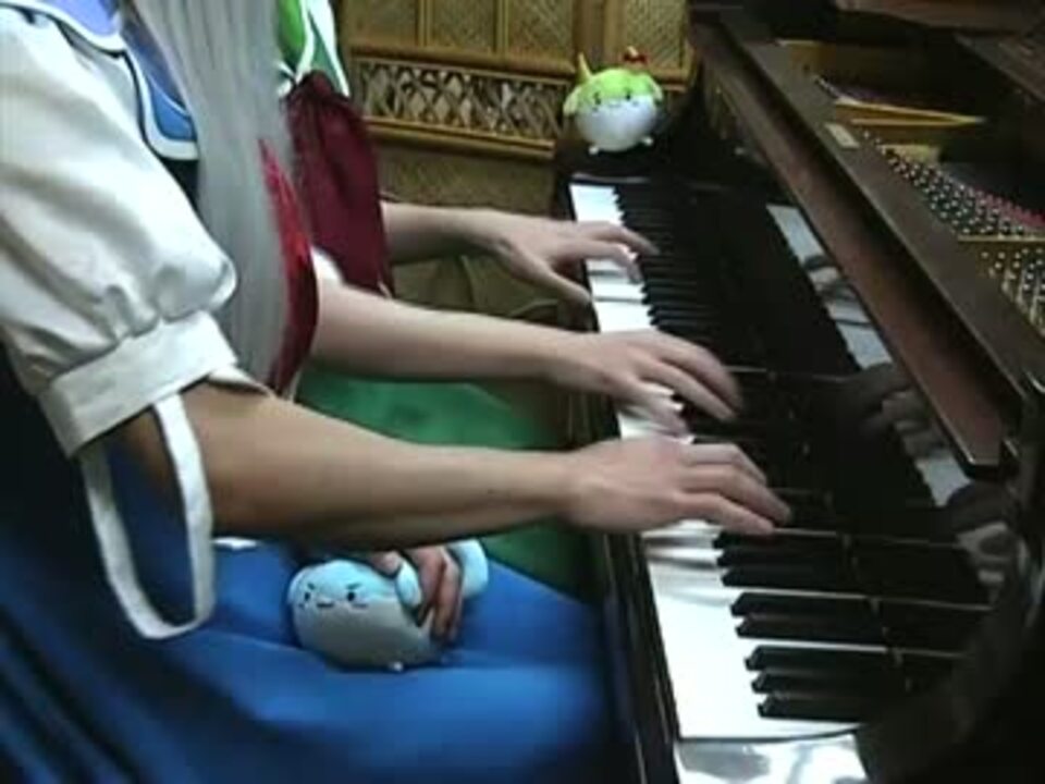 東方永夜抄3面道中の「懐かしき東方の血」をピアノ連弾で弾いてみました。<br />慧音先生ときもけーねのコスプレをしています☆(=´∀`)人(´∀`=)<br /><br />【1st、けーね先生(青):ぱちょり】<br />演奏動画は初めてです。まさかこのようなデビューを飾るとは…<br />素人なので温かい目で見てやってください。<br />twitter:rurunpu_pae マイリス:<a href="https://www.nicovideo.jp/mylist/38113455" target="_blank" rel="noopener">mylist/38113455</a><br /><br />【2nd、きもけーね(緑):pianoYN】<br />お、おっさん二人がけーねを愛しすぎてこうなりました。後悔はしてない(キリッ<br />筋肉とか言うな~w キモくないよ、可愛いよ!(⋈・◡・)☆<br /><br />