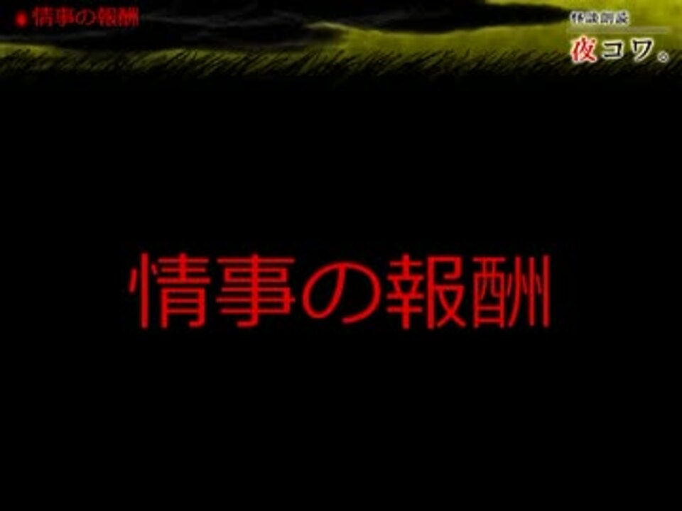 我が家のゆっくりが、心霊サイト「夜コワ。」から読んでくれました。<br />ニコ生で流した動画の詰め合わせです。既読の場合はご容赦下さい。<br />放送しているコミュ>>co120573<br /><br />1話目:<a href="#" class="seekTime" data-seekTime="00:00" onclick="seekNicoPlayer('#00:00'); return false;">#00:00</a> 情事の報酬(R18) <br />2話目:<a href="#" class="seekTime" data-seekTime="02:46" onclick="seekNicoPlayer('#02:46'); return false;">#02:46</a> 徹夜続きの工事現場 <br />3話目:<a href="#" class="seekTime" data-seekTime="04:15" onclick="seekNicoPlayer('#04:15'); return false;">#04:15</a> 鹿嶋の海 <br /><br />人によっては残酷と感じる表現が含まれる場合があります。<br />お気に召されないお話があった場合は、飛ばしてご視聴下さい。<br /><br />自動で次の動画に移動するように設定してあります。<br />(最新の動画のみ、最初の動画に移動します。)<br /><br />ループが嫌な方は、お手数なのですが、終わり際で停止ボタンを<br />押すようにして下さい。<br /><br />Twitter>><a href="https://twitter.com/ikka_gunma" target="_blank" rel="noopener nofollow">https://twitter.com/ikka_gunma</a><br />バックナンバー>><a href="https://www.nicovideo.jp/mylist/34820449" target="_blank" rel="noopener">mylist/34820449</a><br />別シリーズ>><a href="https://www.nicovideo.jp/mylist/35018789" target="_blank" rel="noopener">mylist/35018789</a>