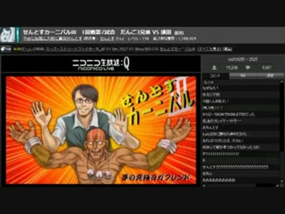 せんとすカーニバルⅢ ~凡人オリンピック ザ・ビッグファイト~ 1回戦第7試合!<br />だんご3兄弟(ダルシム) VS 須田(リュウ)です!<br />予選を勝ち抜き、成長の跡を見せた須田さん!<br />生涯善戦マンのだんごさんをも喰ってしまうのでしょうか!<br /><br />だんご3兄弟さん→コミュニティ:co1260099 ツイッター:danngo3<br />須田さん→ツイッター:lamune1219<br /><br />【テーマ曲】チカタリラさん→コミュニティ:co453593 ツイッター:chikatarira<br />【テロップ】響鬼さん→ツイッター:SAKURA WISH<br />【イラスト】ショウマさん<br /><br />ID:Upnushing 録画日時:1月22日22時<br />1回戦第6試合→<a href="https://www.nicovideo.jp/watch/sm19895503" class="watch">sm19895503</a> 1回戦第8試合→<a href="https://www.nicovideo.jp/watch/sm19980297" class="watch">sm19980297</a> マイリスト→<a href="https://www.nicovideo.jp/mylist/29457577" target="_blank" rel="noopener">mylist/29457577</a><br />コミュニティ:co204285 ツイッター:upnushing