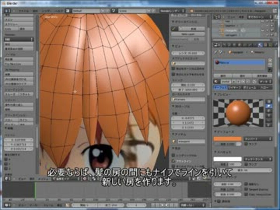 髪のモデリング MMDモデル制作<a href="https://www.nicovideo.jp/mylist/36297476" target="_blank" rel="noopener">mylist/36297476</a> 3:50~ヘルメットの前方部分は削除してかぶせてください