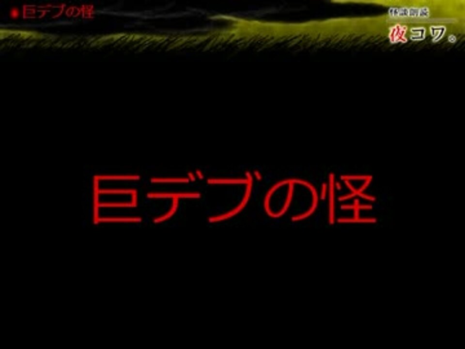 我が家のゆっくりが、心霊サイト「夜コワ。」から読んでくれました。<br />ニコ生で流した動画の詰め合わせです。既読の場合はご容赦下さい。<br />放送しているコミュ>>co120573<br /><br />1話目:<a href="#" class="seekTime" data-seekTime="00:00" onclick="seekNicoPlayer('#00:00'); return false;">#00:00</a> 巨デブの怪(R18) <br />2話目:<a href="#" class="seekTime" data-seekTime="02:11" onclick="seekNicoPlayer('#02:11'); return false;">#02:11</a> イヤな女子二人 <br /><br />人によっては残酷と感じる表現が含まれる場合があります。<br />お気に召されないお話があった場合は、飛ばしてご視聴下さい。<br /><br />自動で次の動画に移動するように設定してあります。<br />(最新の動画のみ、最初の動画に移動します。)<br /><br />ループが嫌な方は、お手数なのですが、終わり際で停止ボタンを<br />押すようにして下さい。<br /><br />Twitter>><a href="https://twitter.com/ikka_gunma" target="_blank" rel="noopener nofollow">https://twitter.com/ikka_gunma</a><br />バックナンバー>><a href="https://www.nicovideo.jp/mylist/34820449" target="_blank" rel="noopener">mylist/34820449</a><br />別シリーズ>><a href="https://www.nicovideo.jp/mylist/35018789" target="_blank" rel="noopener">mylist/35018789</a>