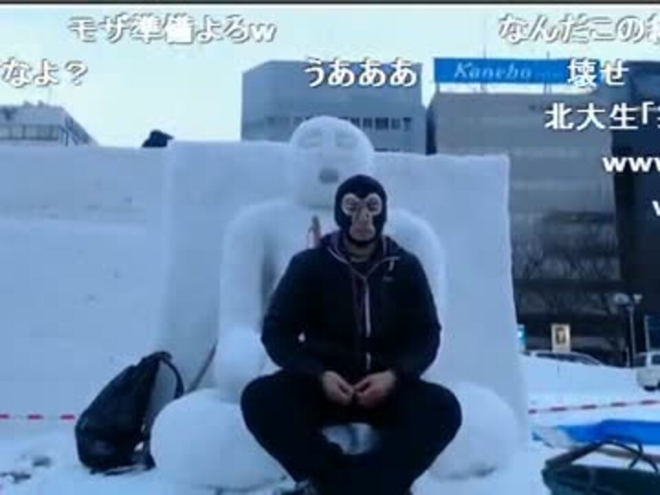 札幌にやってきたぞ!今から雪祭りで俺の巨大雪像を見に行く。気温はかなり寒いぞ!<br />2013/02/03(日) 開演:15:43<br />この番組は2013/02/03(日) 17:13に終了いたしました。<br />来場者数:11264人 コメント数:19722<br />1/3→<a href="https://www.nicovideo.jp/watch/sm19990103" class="watch">sm19990103</a><br />3/3→<a href="https://www.nicovideo.jp/watch/sm19990656" class="watch">sm19990656</a><br />【予告】<br />やい!暗黒Qの北の大地を7年ぶりに踏みしめたファイターズ横山だ。こっちは東京の寒さとは違う。風がすでに冷たい。でもみんな標準語なんだな。今は電車の中でお絵かきしてるが、もうすぐちくわが住んでる札幌だ。そこに着いたらさっそく雪祭りを見に行くぞ。予告はしないからしばし札幌のラーメン野郎は待ってろ!<br /><br />ブロマガ <a href="http://ch.nicovideo.jp/midori/blomaga/ar91718" target="_blank" rel="noopener nofollow">http://ch.nicovideo.jp/midori/blomaga/ar91718</a>