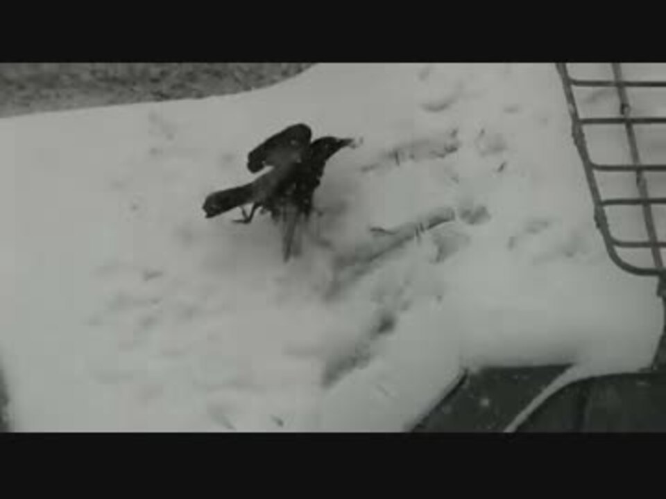 雪で遊ぶカラスがカワイイ