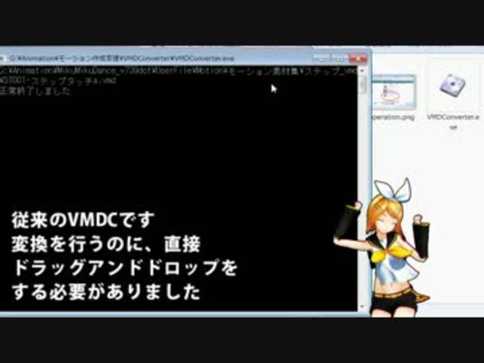 こんばんわ。mo-noです。<br />MikuMikuDanceモーションファイル(.vmd)とテキスト(.csv)の相互変換を行うツール、Yumin様のVMDConverterをGUI化しました<br />ダウンロード <a href="http://bowlroll.net/up/dl13705" target="_blank" rel="noopener nofollow">http://bowlroll.net/up/dl13705</a><br /><br />関連ツール<br />VmdSynthesizer <a href="https://www.nicovideo.jp/watch/sm7968105" class="watch">sm7968105</a><br />MMDモーション補間ツール <a href="https://www.nicovideo.jp/watch/sm19838727" class="watch">sm19838727</a> <a href="https://www.nicovideo.jp/watch/sm19924278" class="watch">sm19924278</a> <a href="https://www.nicovideo.jp/watch/sm20108223" class="watch">sm20108223</a><br /><br />エフェクトだけでなく、すべてのMMD関連のファイルを対象とした、ファイル管理ソフトMikuMikuProject(現在β版)もお試しください <a href="https://www.nicovideo.jp/watch/sm18918187" class="watch">sm18918187</a> <br /><br />Twitter : @monoMMD<br /><a href="https://www.nicovideo.jp/mylist/35847528" target="_blank" rel="noopener">mylist/35847528</a>