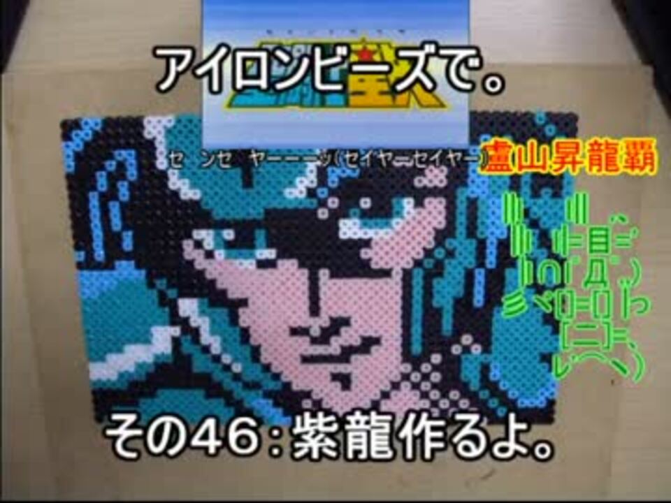 アイロンビーズでFCの聖闘士星矢 黄金伝説 完結編の紫龍を作るよ。<br />細かい部分があんまりなくて楽・・・と思ったが同色範囲が広くて疲れた。<br />前:<a href="https://www.nicovideo.jp/watch/sm20197287" class="watch">sm20197287</a> 次:<a href="https://www.nicovideo.jp/watch/sm20326496" class="watch">sm20326496</a><br /><br />BGMとか:<a href="https://www.nicovideo.jp/watch/sm15063987" class="watch">sm15063987</a> <a href="https://www.nicovideo.jp/watch/sm15064800" class="watch">sm15064800</a><br />使用ソフト:AviUtl つんでれんこ<br /><br />(;゚ω゚)ノのその他のうp<br /> 作業部屋 <a href="https://www.nicovideo.jp/mylist/15193689" target="_blank" rel="noopener">mylist/15193689</a><br /> 東方ネタ <a href="https://www.nicovideo.jp/mylist/32662892" target="_blank" rel="noopener">mylist/32662892</a><br /> トラブルクッキング <a href="https://www.nicovideo.jp/mylist/16433026" target="_blank" rel="noopener">mylist/16433026</a><br /> ゆっくり実況とか <a href="https://www.nicovideo.jp/mylist/35880306" target="_blank" rel="noopener">mylist/35880306</a><br />
