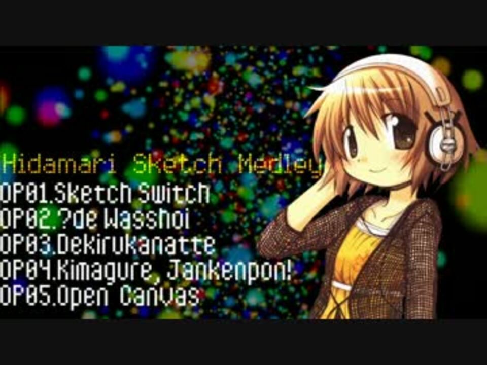 3月3日、「超ひだまつり in 日本武道館」開催を記念してひだまりスケッチ全OPをアレンジし、一つのメドレーにしてみました!<br />ひだまつり行けた方も行けなかった方もお楽しみください!<br />やっぱりゆのっち可愛いですね。<br /><font color="red">Pangelino氏によるカラオケ版:on Vocal[<a href="https://www.nicovideo.jp/watch/sm20248310" class="watch">sm20248310</a>]/off Vocal[<a href="https://www.nicovideo.jp/watch/sm20248469" class="watch">sm20248469</a>]</font><br /><br />その他メドレー:[<a href="https://www.nicovideo.jp/mylist/21050731" target="_blank" rel="noopener">mylist/21050731</a>]<br /><font color="blue">◆高音質mp3+インスト版 <a href="http://www1.axfc.net/uploader/so/2815856?key=hidamari" target="_blank" rel="noopener nofollow">http://www1.axfc.net/uploader/so/2815856?key=hidamari</a></font>