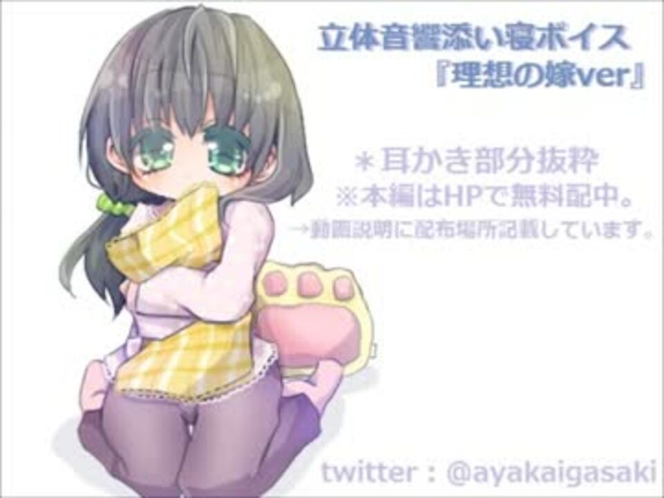 <b>宣伝ありがとうございます!これからも新作頑張っていきます!!</b>けろけろしないノイズカット私にもできました!!!!感動したので、ただノイズカットしただけ(未調整)の動画置いていきますwww<br />これからさらなる調整、研究をして、完全にけろらない音声を作りますぅぅぅ!!!!!<br />徐々に過去作品ノイズカット版うpしたいと思ってます(PC頑張れ)<br />イラスト描いていただきました【<a href="http://www.geocities.jp/cherry_rc127/】" target="_blank" rel="noopener nofollow">http://www.geocities.jp/cherry_rc127/】</a><br />コミュニティ【co1593871】立体音響耳かきボイス【<a href="https://www.nicovideo.jp/mylist/29972027" target="_blank" rel="noopener">mylist/29972027</a>】<br />耳かきボイス【<a href="https://www.nicovideo.jp/mylist/31600495" target="_blank" rel="noopener">mylist/31600495</a>】音響関係【<a href="https://www.nicovideo.jp/mylist/31342419" target="_blank" rel="noopener">mylist/31342419</a>】<br /><br /> ブログ本館(素材配布等もこちら)【<a href="http://mimikakiboisu.blog.shinobi.jp/】" target="_blank" rel="noopener nofollow">http://mimikakiboisu.blog.shinobi.jp/】</a><br />twitter【@ayakaigasaki】<br />※ほかの動画サイト等への無断転載はご遠慮ください。