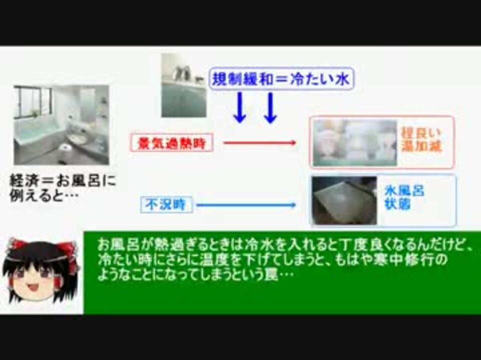 「規制緩和」は英語だと「deregulation」なので、どちらかというと「規制撤廃」と訳した方が正確なんでしょうけど。<br /><br />BGM TVアニメ「とある科学の超電磁砲」より<br />・思い出<br />・笑顔で<br />・お姉さま…<br /><br />参考サイト<br />新世紀のビッグブラザーへ blog <a href="http://ameblo.jp/takaakimitsuhashi/" target="_blank" rel="noopener nofollow">http://ameblo.jp/takaakimitsuhashi/</a><br />代表戸締役 ◆jJEom8Ii3Eの妄言 <a href="http://blogs.yahoo.co.jp/daitojimari" target="_blank" rel="noopener nofollow">http://blogs.yahoo.co.jp/daitojimari</a><br />廣宮孝信の「国の借金」“新常識”<a href="http://grandpalais1975.blog104.fc2.com/" target="_blank" rel="noopener nofollow">http://grandpalais1975.blog104.fc2.com/</a><br /><br />制作物<br /> 政治系MAD動画→<a href="https://www.nicovideo.jp/mylist/17279420" target="_blank" rel="noopener">mylist/17279420</a><br /> 経済講座シリーズ→<a href="https://www.nicovideo.jp/mylist/19534280" target="_blank" rel="noopener">mylist/19534280</a><br /> 政治系以外の動画→<a href="https://www.nicovideo.jp/mylist/22564233" target="_blank" rel="noopener">mylist/22564233</a><br /><br />前回「労働需要と労働供給」<a href="https://www.nicovideo.jp/watch/sm20292631" class="watch">sm20292631</a><br />次回「摩擦的失業と構造的失業」<a href="https://www.nicovideo.jp/watch/sm20480315" class="watch">sm20480315</a>